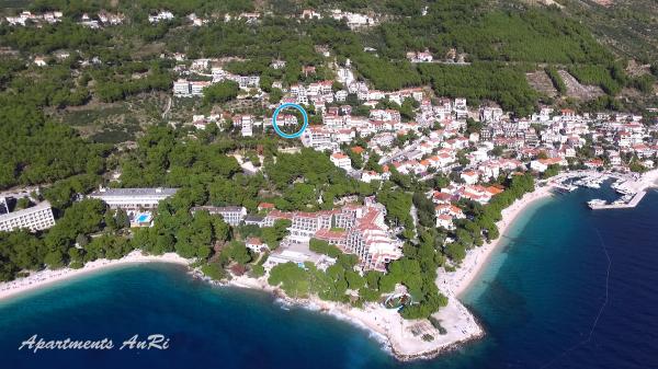 In der Perle von Makarska Riviera - Brela - in stillem Umkreis der mittelmeerischen Vegetation, erwartet Sie Appartments AnRi! Die Unterkunft im Appartments und Zimmer AnRi ist Standardeingerichtet für einen angenehmen Urlaub. Appartments und Zimmer verfügen über Balkon oder Terasse mit wunderschönem Blick auf das Meer und seine Inseln. Parkplatz im Schatten vor dem Haus ist für unsere Gäste gratis. Das kristallklare Meer und die langen Kieselstrände, umkreist von einem Pinienwald, sind nur 200 Meter entfernt. In der Nähe gibt es für Sportfreunde viele Möglichkeiten ihren Urlaub aktiv zu gestalten, wir Tennisplätze, Minigolf, Wassersport, Wandern, Rafting und Beach-Volleyball. Erleben Sie einen unvergesslichen Urlaub in der Appartments AnRi ! Wir freuen uns auf Ihren Besuch !