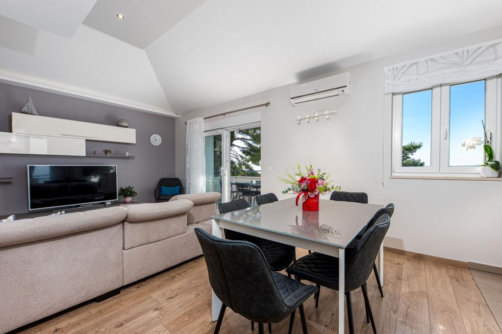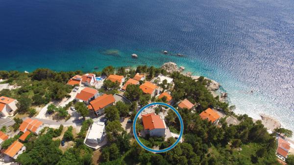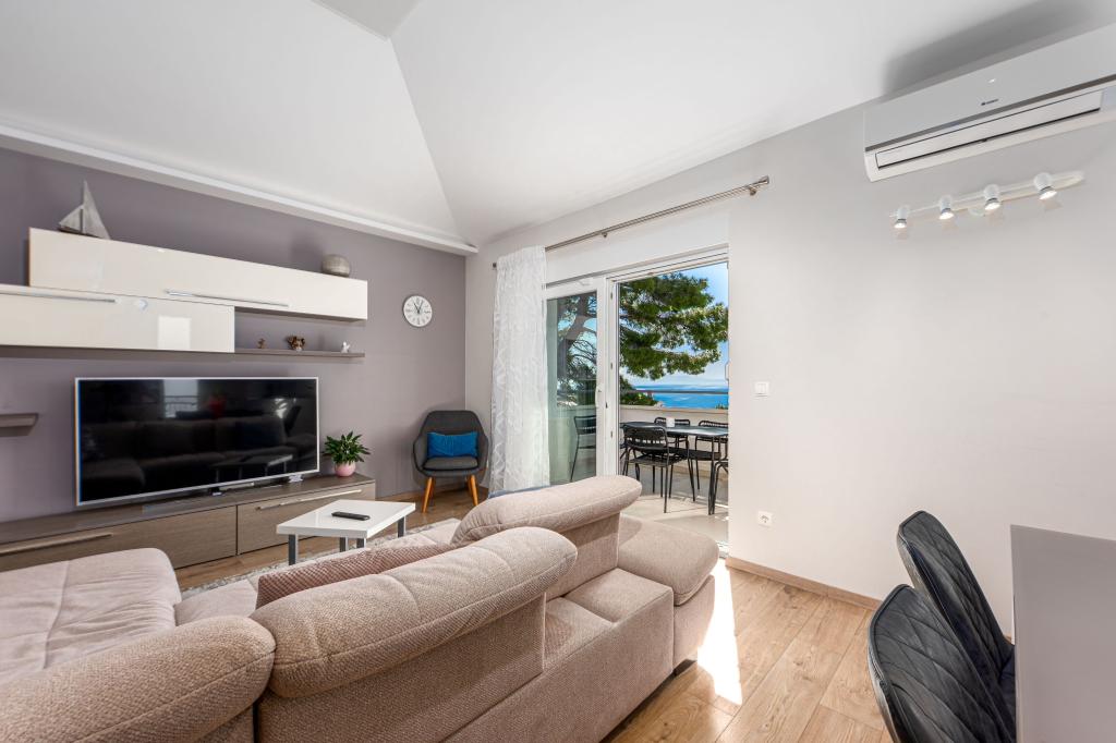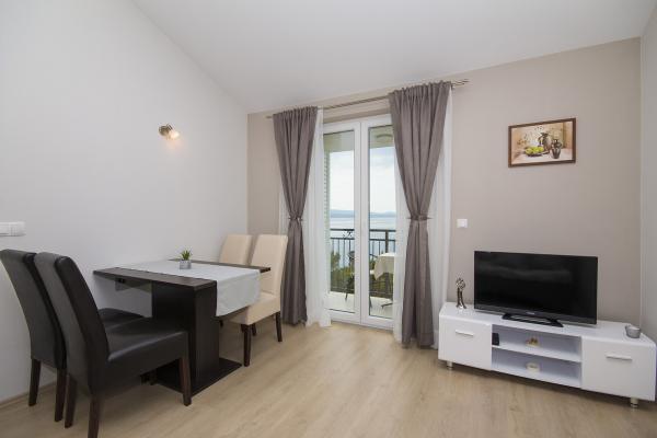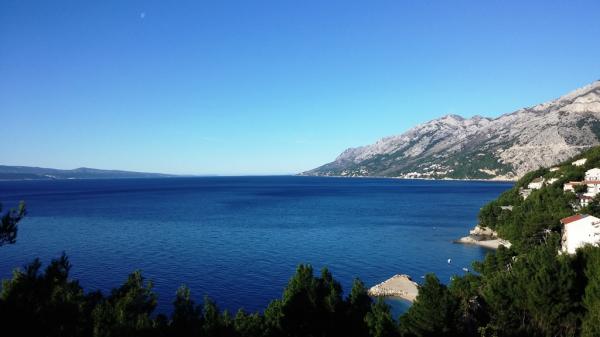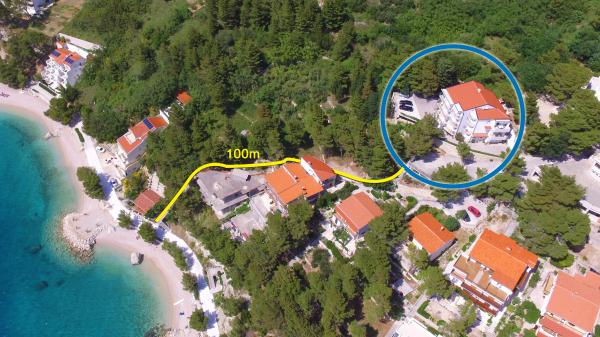 Neu gebaute Wohnungen in einem ruhigen Vorort von Brela - Jardula Nähe der schönen Strände. Modernen Apartments befinden sich im dritten Stock des Hauses und bieten einen herrlichen Blick auf das Meer und die Inseln. Die Anlage befindet sich kostenlose Parkplätze zur Verfügung gestellt. Der Strand ist über eine Treppe erreichbar. Der Strand ist 100 Meter von der Wohnung entfernt.