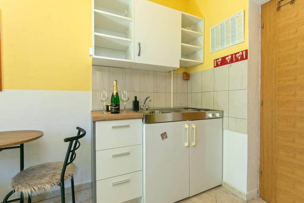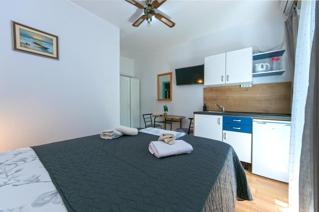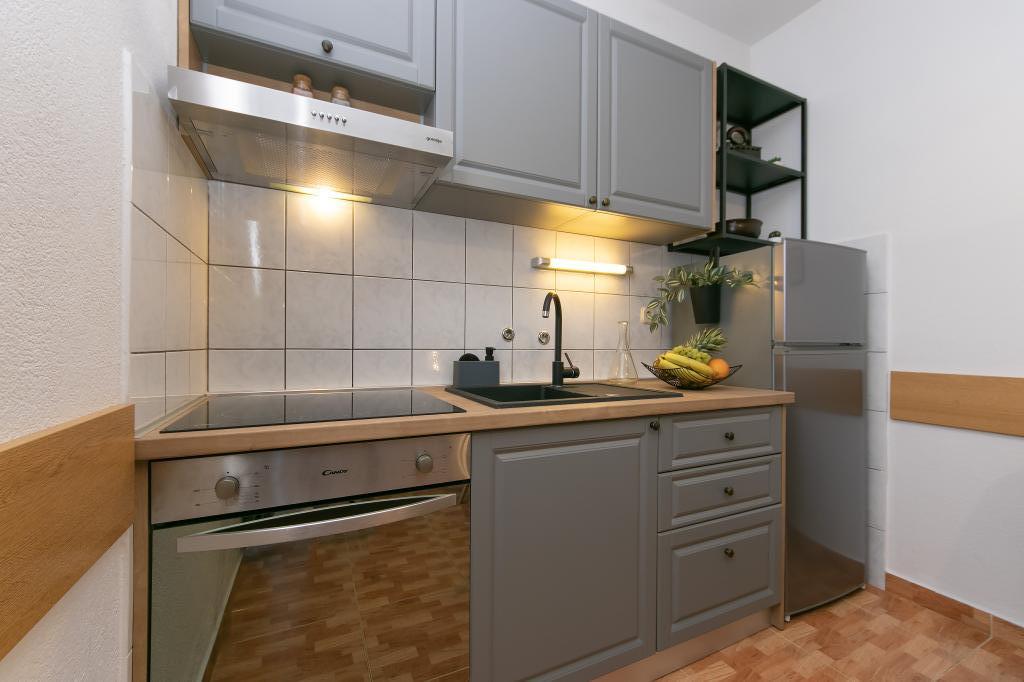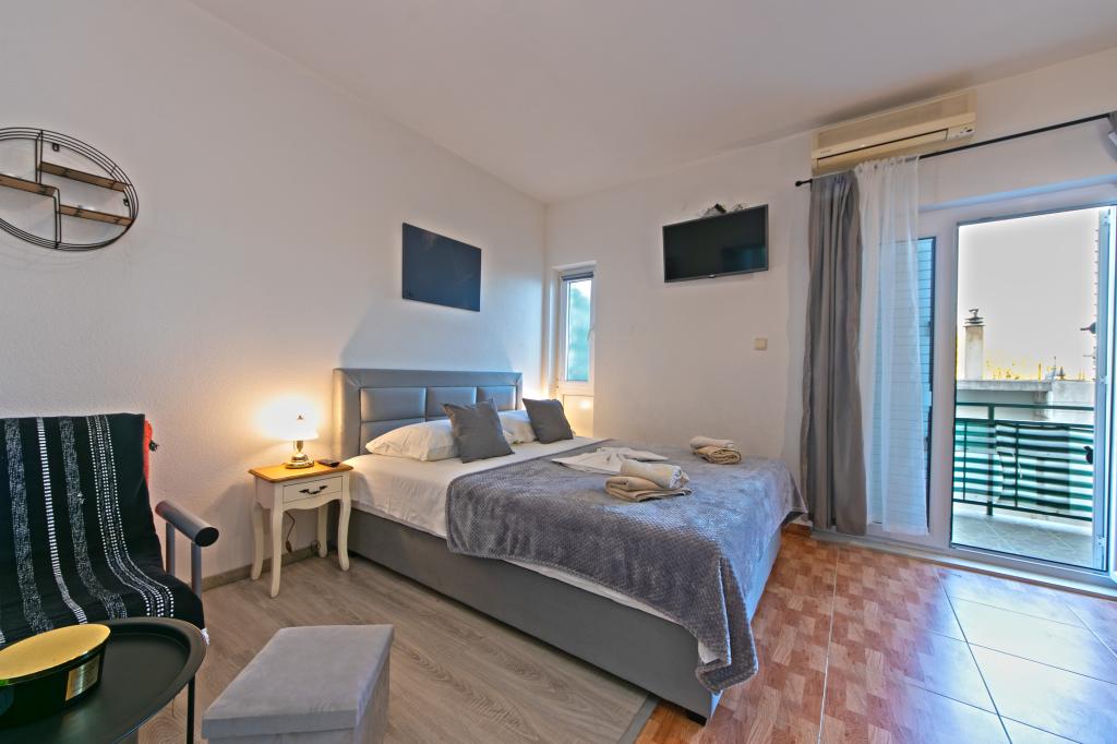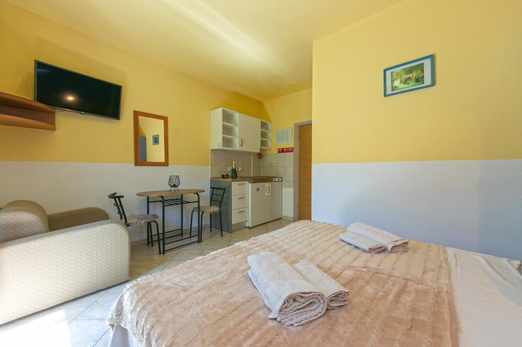 Die Apartments Hrvoje befinden sich in erhöhter Lage im ruhigen Teil der Stomarica Straße. Entfernung vom Kiesstrand ist ca. 3 min. Spaziergang oder 150 M. Auf der einen Seite des Hauses gibt es einen Blick auf das Meer und die andere hat einen Blick auf den Berg Biokovo. Das Familienangebot der Familie Jelčić ist hochwertig und die Gäste können sich in den Appartements völlig entspannen und einen unvergesslichen Urlaub verbringen. Die Apartments befriedigen alle Gäste, die einen angenehmen Urlaub verbringen möchten. Das Angebot umfasst Apartments mit Küche, Schlafzimmer, Klimaanlage, Sat-TV, Bad und Balkon. Hinter dem Haus befindet sich eine Gartenterrasse mit Tischen, wo Sie sich entspannen und die friedliche Atmosphäre mit Blick auf das Meer genießen können. Ebenfalls verfügbar ist die Verwendung eines Außengrills, aber eine freundliche Dame. Jelcic wird ihnen gerne helfen. Das Parken ist gesichert.
