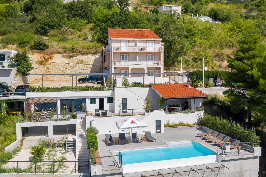 Die Villa Matko Oase bietet Ihnen sieben Apartments Ihrer Wahl. Jedes Apartment verfügt über einen Balkon mit Meerblick, eine voll ausgestattete Küche, Klimaanlage und die Mitbenutzung eines beheizten Swimmingpools. Eine überdachte Terrasse mit Gasgrill, Sitzecke und Außenküche steht Ihnen ebenfalls zur Verfügung. Genießen Sie Ihre Mahlzeiten mit der Familie, während die Kinder im Pool planschen.