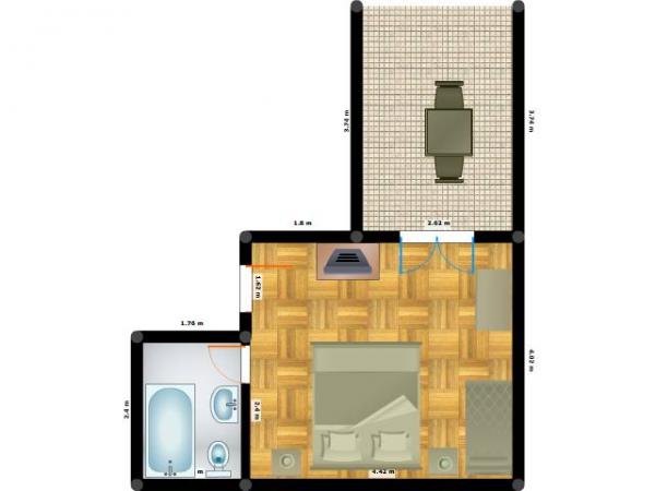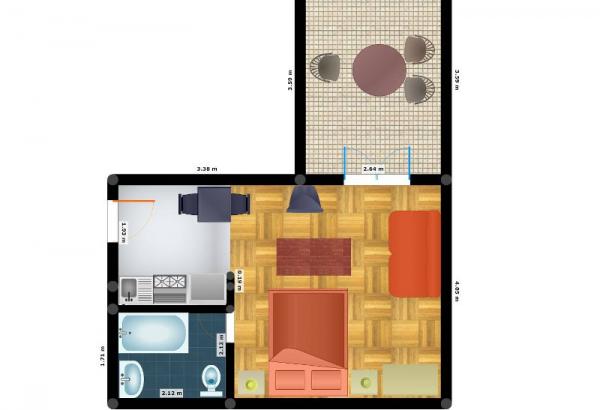 Studio-Apartment für zwei Personen mit Zusatzbett (0 m2)