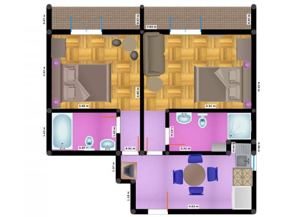 Ferienwohnung für vier Personen mit zwei Zusatzbetten (45 m2)