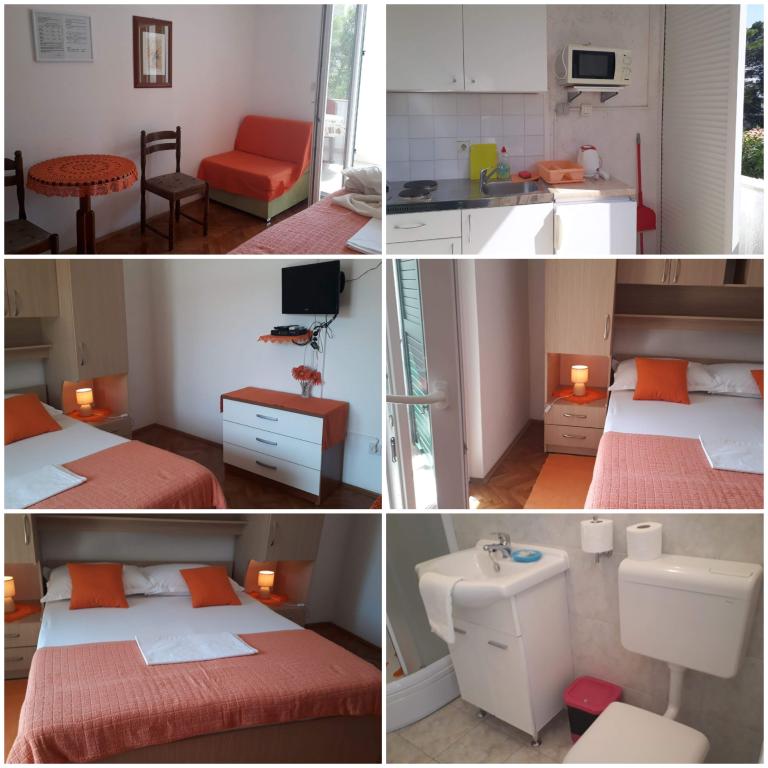 Die Studio-Apartments Roko befinden sich im Erdgeschoss eines Einfamilienhauses. Brela liegt an der Makarska Riviera und ist der schönste Teil. Sie erstrecken sich über eine Länge von 6 Kilometern und verfügen über mehrere große und mehrere kleinere Strände. Die Apartments Roko liegen in unmittelbarer Nähe des schönsten, mehrfach ausgezeichneten Strandes. Möglichkeit von Tagesausflügen zu nahe gelegenen Picknickplätzen: Nationalpark KRKA, Naturpark BIOKOVO, MEDUGORJE UND MOSTAR (BIH) oder die Inseln HVAR BRAČ. Wer Brela einmal besucht, kommt wieder zurück!!! Alle Studio-App. sind ausgestattet mit 2 1 Betten, Küche, Klimaanlage, WLAN, Sat-TV, Bad, großem Balkon, Möglichkeit zur Nutzung einer Waschmaschine in Anwesenheit der Haushälterin. Handtücher, Fön sind ein fester Bestandteil des Badezimmers.