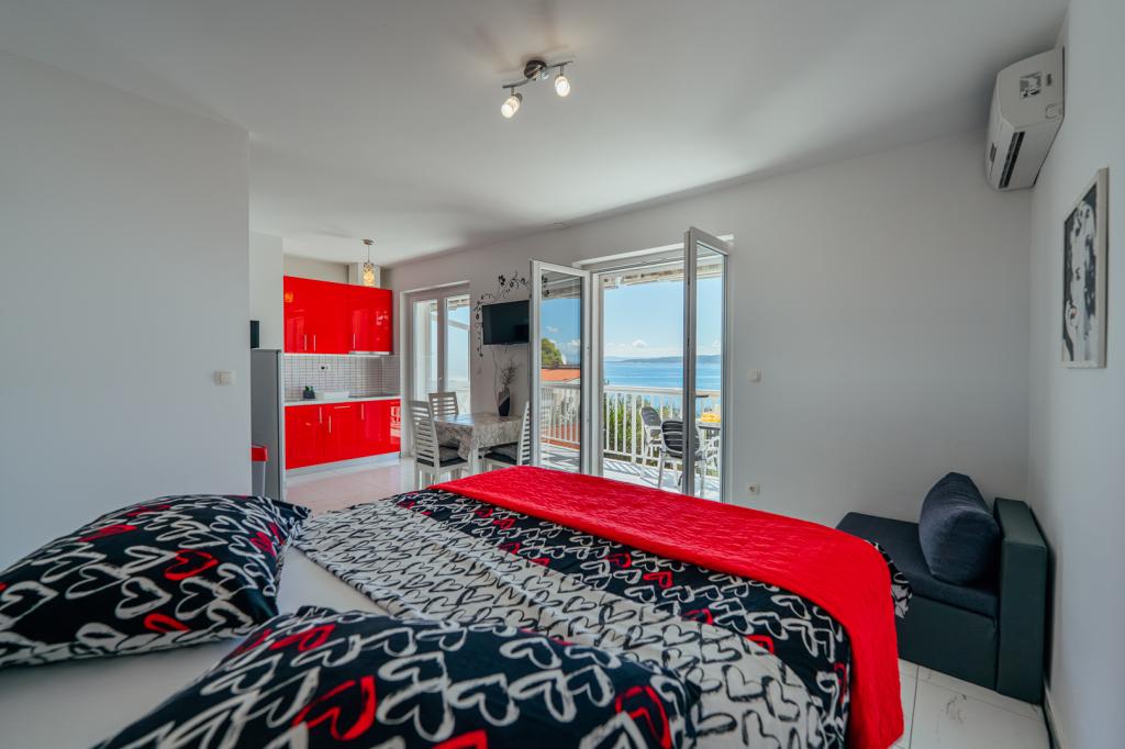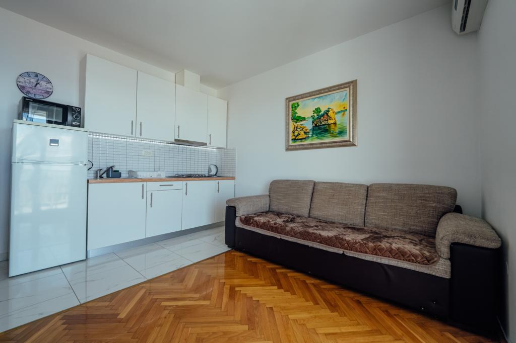 Kurtaxe ist im Preis inbegriffen.Ich empfehle die Wohnung A5+1. Wir kamen als fünfköpfige Familie mit drei Kindern im Teenageralter an. Die Unterkunft, die Kommunikation mit den Eigentümern sowie das Erscheinungsbild und die Sauberkeit der Wohnung waren einwandfrei. Die Küchenzeile hätte etwas größer sein können (die Arbeitsplatte), aber alles andere war perfekt. Der Eigentümer, Milan, war unglaublich freundlich und hilfsbereit. Nach dem Aufstieg von Dutzenden von Treppen erreichten wir den Strand, aber das ist der Charme von Brela. Geschäfte und Restaurants sind in der Nähe.