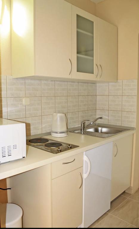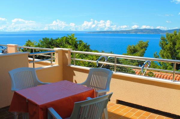 Wir sind aus dem Urlaub angereist und schreiben gleich eine Bewertung. Zimmer: Alles entspricht dem Foto. Das Zimmer ist geräumig, sauber. hell. Eine kleine Küche mit allen Küchenutensilien und Geschirr. Kühlschrank, Mikrowelle, Wasserkocher, TV, Klimaanlage. Und die Aussicht vom Balkon ist traumhaft. Es war sehr angenehm, abends auf dem Balkon zu sitzen. Bei unserer Ankunft wurden wir von der Gastgeberin begrüßt und mit erfrischenden Getränken von unterwegs versorgt. Sehr freundliche Gastgeber, die dafür gesorgt haben, dass wir uns während unseres Urlaubs wohlfühlen. Die Wohnungen selbst liegen in der ersten Reihe, man muss die Treppe hinaufsteigen. Eine Art tägliche Übung. Für ältere Menschen wird das Klettern schwierig sein. Wir suchten nach Apartments außerhalb des Zentrums von Brela. Wir wollten Ruhe und haben sie bekommen. In diesem Teil von Brela ist es ruhig. Uns hat alles gefallen. Wir empfehlen diese Apartments zum Entspannen. Und Brela im Allgemeinen.