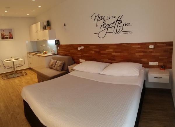 Die Wohnung waren wir im Juni mit ihrer Tochter. Apartments wurden vor kurzem renoviert. Die Wohnung ist sehr ordentlich, sauber, modern und komplett ausgestattet. Es gab keine Notwendigkeit, irgendetwas anzufordern. Alles war für alles gesorgt, und noch mehr. Die Wohnungen verfügen über Terrassen mit Meerblick. Die Wohnung verfügt über einen TV, WLAN und einen Safe. Was ich trotz all der Superlative für die Hospitality Suite und sustretljivost Host sagte; etwas, das Sie nicht genau das finden! Sicherlich einer der besten Wohnung, wo wir waren! Ich von ganzem Herzen empfehlen!