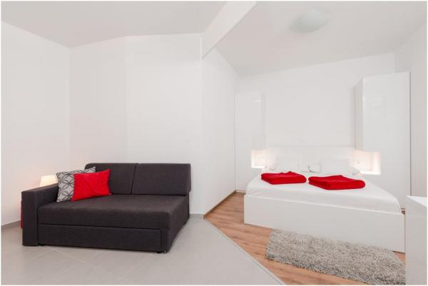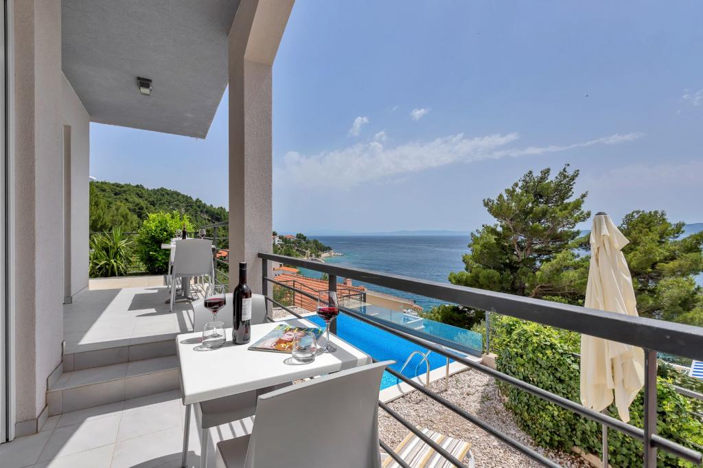 Die Wohnungen sind modern, klimatisiert, verfügen über eine voll ausgestattete Küche, Bad mit Dusche, LED-Sat-TV, WLAN und einen Balkon mit Blick auf das Meer und die Inseln.