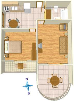 Ferienwohnung für zwei Personen mit zwei Zusatzbetten (46 m2)