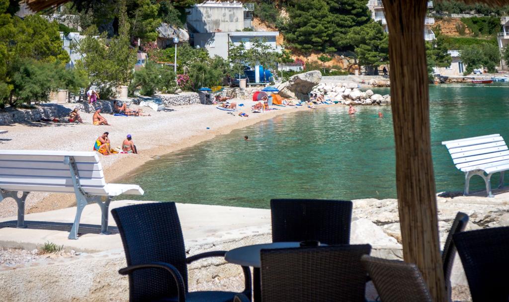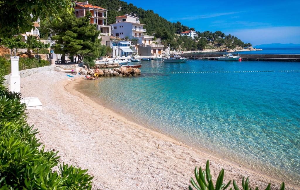 „Villa Davor Tomaš“ liegt in der Bucht Stomarica in Brela an den Südhängen. Nur 130 Meter vom Meer entfernt zeichnet es sich durch eine Kombination aus Moderne und Tradition aus. Einerseits liegt es in der Nähe alter Steinhäuser, in der Nähe der jahrhundertealten Steinkirche, und andererseits ist es von modernen Villen mit Apartments umgeben, was einen angenehmen Aufenthalt für diejenigen bietet, die einen aktiven oder erholsamen Aufenthalt wünschen Urlaub. Aufgrund seiner Lage und südlichen Ausrichtung bietet es einen herrlichen Blick auf das Meer und die Inseln Brač und Hvar. Das Haus bietet auf drei Etagen Unterkunft in Appartements und Zimmern. Der mehrere Kilometer lange Strand mit seinen wunderschönen Buchten und dem klaren Meer, an dem sich eine Promenade erstreckt, lädt zum Entspannen im Schatten der Pinien ein. Die Gastfreundschaft des Gastgebers und eine Reihe von Details, die in die Konstruktion dieses schönen Hauses eingeflochten sind, geben den Gästen das Gefühl, in ihrem eigenen Zuhause zu wohnen. Kommen Sie und verbringen Sie einen unvergesslichen Urlaub bei uns! Wir freuen uns auf Ihr Kommen!