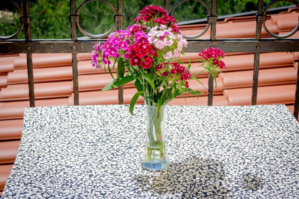 Kurtaxe ist im Preis inbegriffen.Wir bieten 6 voll ausgestattete Apartments und 1 Zimmer. Alle Wohneinheiten sind klimatisiert (Wohnzimmer), verfügen über LCD-TV und kostenlosen Internetzugang (WLAN). Die Wohnungen sind modern eingerichtet, in allen Wohnungen gibt es eine voll ausgestattete Küche mit Utensilien zum Essen und Kochen, einem Wasserkocher, einer Mikrowelle, einem Tisch mit Sitzgelegenheiten und Möbeln für den Balkon oder die Terrasse. Das Zimmer besteht aus zwei Betten mit der Möglichkeit eines Zusatzbettes. Es verfügt über einen Kühlschrank und einen Wasserkocher. Es ist nach Norden ausgerichtet, ohne Balkon. Die Bettwäsche wird alle 7 Tage und die Handtücher 2 Mal pro Woche gewechselt. Begrüßungsgetränk und Endreinigung sind im Preis inbegriffen. Parkplätze stehen vor der Villa zur Verfügung.