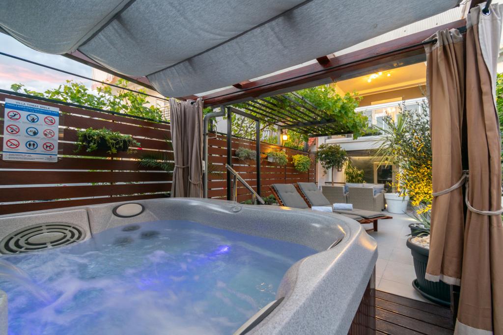 Die Villa Tomaš Brela liegt in ruhiger Lage, 2 km vom Zentrum von Brela entfernt. Apartment 1 bietet Platz für 6 + 2 Personen, das kleine Haus (Apartment 2) für 2 Personen. Die Apartments sind komplett ausgestattet, sodass Sie Ihren Urlaub unbeschwert genießen können. Apartment 1 erstreckt sich über zwei Etagen und verfügt über 4 Schlafzimmer, 2 Küchen, 2 Badezimmer und eine Terrasse. Apartment 2 bietet eine Küche, ein Schlafzimmer, ein Badezimmer und einen Balkon. Zur Villa Tomaš stehen Ihnen ein Swimmingpool und ein Whirlpool zur Verfügung. Kostenlose Parkplätze befinden sich direkt neben der Unterkunft. Der Strand Podcrkavlje sowie das erste Restaurant und die Strandbar sind nur 200 Meter von der Villa entfernt.