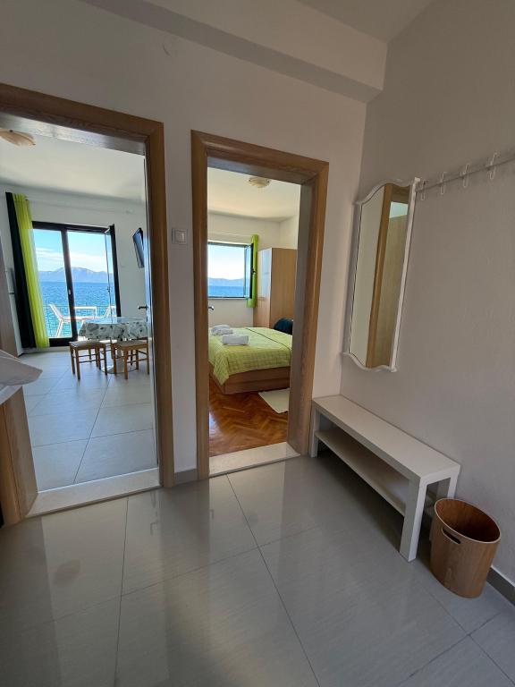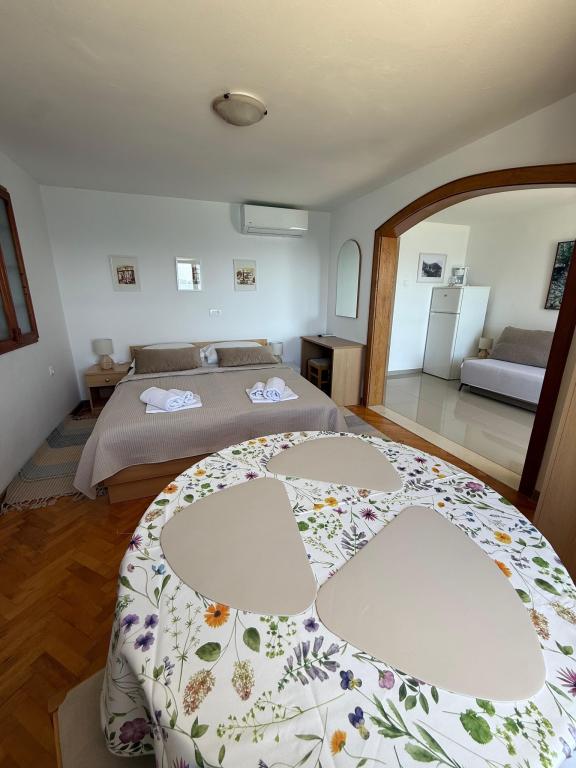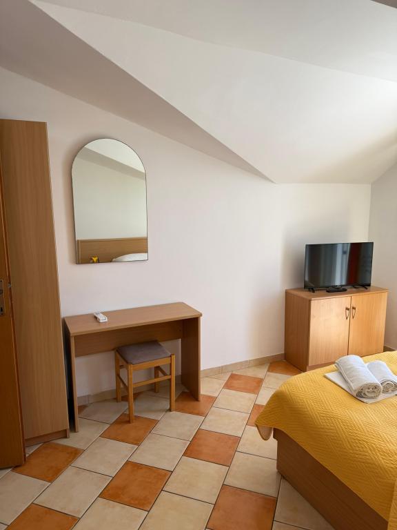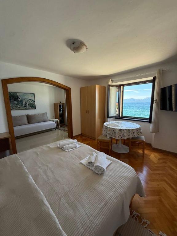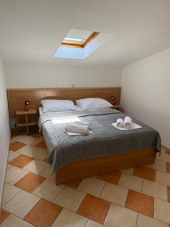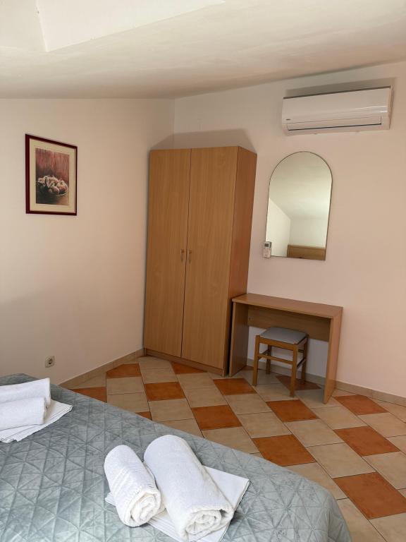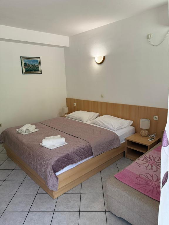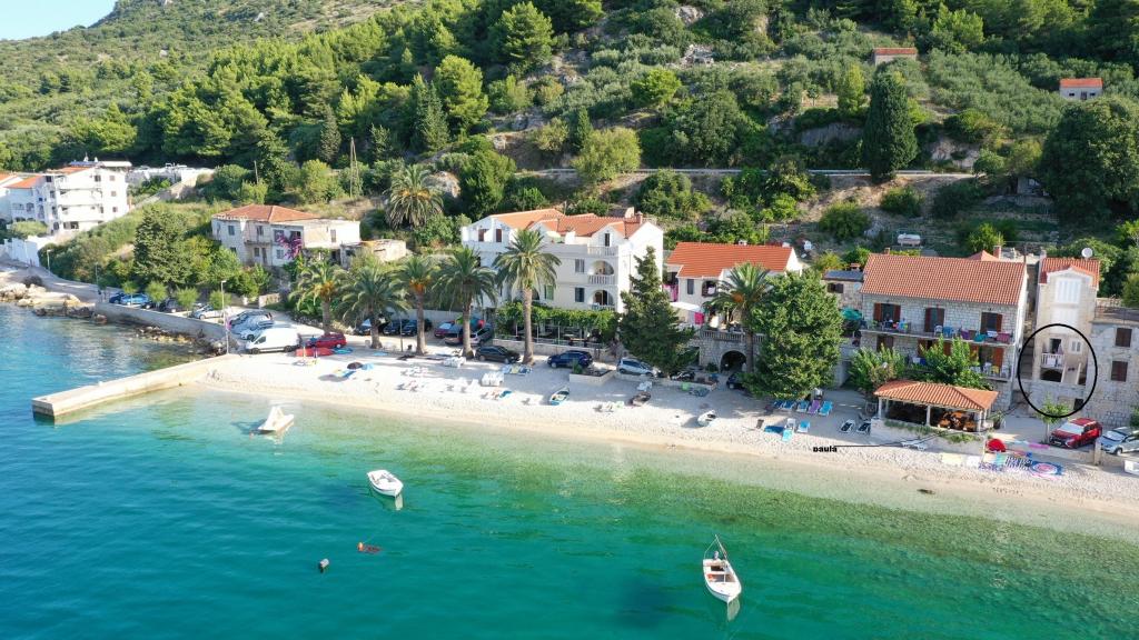 Zwischen dem Festland und der Halbinsel Peljesac jemand vor Jahrhunderten vergessene Stück vom Paradies. Brist. Kleine, ruhige und gastfreundlicher Ort mit ein paar hundert Einwohnern, die von der Hauptstraße bis hinunter zum Meer ist. Transparent, klar und in der Sonne gebadet. Oberhalb der Stadt wie ein Schutzwall erhebt sich stolz Hang mit Olivenhainen und seltene Wildtiere. Im Schatten der Palmen am Sandstrand (Liegestühle, Sonnenschirme, ..) Sie eine Familie Gateway in Pension Frank in Brac Stein gekleidet erwarten können. Das Haus aus einem Märchen, in dem die Art und die gastfreundlichen Menschen seit 1968 zu umarmen und verwöhnen ihre Gäste. Offenen Armen und Herzen. Angepasst letzten Haus in Brist (Sackgasse), und auch von dem Lärm versteckt. Es verfügt über 10 Apartments. Das Haus ist eine Terrasse mit Blick auf die Gradec, Hvar und Peljesac. Auf der Terrasse, freundliche Gastgeber ihre Gäste, die Halb-oder Abendessen zu verwenden, das köstliche dalmatinische und mediterrane Küche. Um die Finger lecken. Das Essen wird immer wieder belohnt Olivenöl, die Experten sind unter den besten in Dalmatien vorbereitet. Mit dieser Art von Lebensmittel, die Sie immer für einen Schluck hausgemachten Schnaps und ein Glas Rotwein zu gehen.