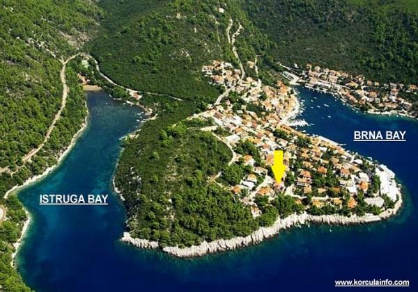 Die Wohnungen befinden sich in einer ruhigen Bucht Brna auf der Südseite der Insel. Wir bieten Ihnen drei Apartments und ein Studio. Studio ist geeignet für 2 Personen, im Erdgeschoss, Zimmer und Toiletten, Küche und Terrasse. Wohnung 3 +1 und 2 +2 Personen eignen sich für Familien mit Kindern, während Suite 4, die beiden Schlafzimmer hat und eignet sich für Familien und Paare. Die Wohnungen befinden sich nahe dem Meer und aus der Innenstadt, so dass die Gäste die Ruhe und Stille genießen. Zentrum Brna von der Wohnung ist 150-200 Meter, gibt es Geschäfte, Restaurants, Post, Cafés und Tourismusbüro. Nahe Brna ist der Sandstrand Istruga für seine heilenden Schlamm bekannt, die natürlicherweise vorkommt und ich nutzen, um rheumatische Erkrankungen zu behandeln. Istruga bietet Sporteinrichtungen und so ist für Kinder geeignet.