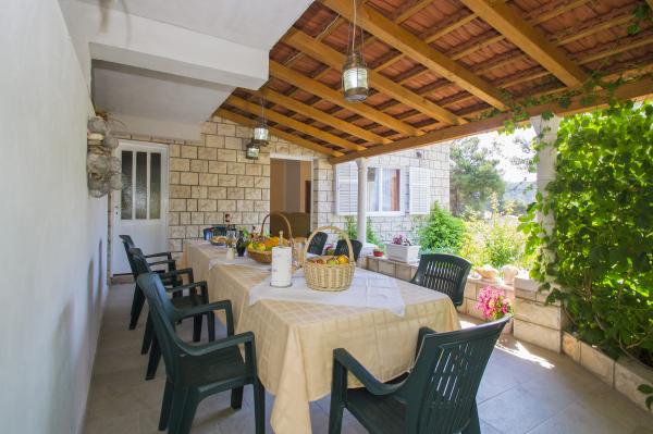 Sehr geräumige Wohnung mit 3 Bädern und einer riesigen Terrasse, wo wir 13 gleichzeitig für den Tisch waren. Durch das Fenster des Schlafzimmers hörten wir den ganzen Tag die Zikaden und nachts das Rauschen des Meeres, das ganz in der Nähe ist. Die Besitzer sind sehr freundlich, hilfsbereit und immer verfügbar. Besuchen Sie den kleinen Hafen von Brünn, Blato, Smokvice und die schöne Vela Luka. Willkommen bei den Einheimischen und danke!