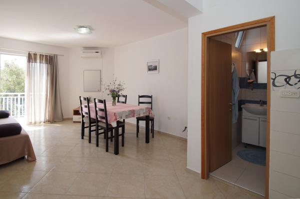 Schöne und saubere Wohnung nur wenige Meter vom Meer entfernt, mit einer schönen Aussicht und einer konstanten Symphonie der Grillen und das Meer, so sind wir auf der Terrasse und genießen Sie den Tag und Abend. Die Gastgeber sind freundlich und gastfreundlich. Wir empfehlen für alle, die Ruhe und den Frieden wollen und wir hoffen, dass sie wieder zu besuchen.