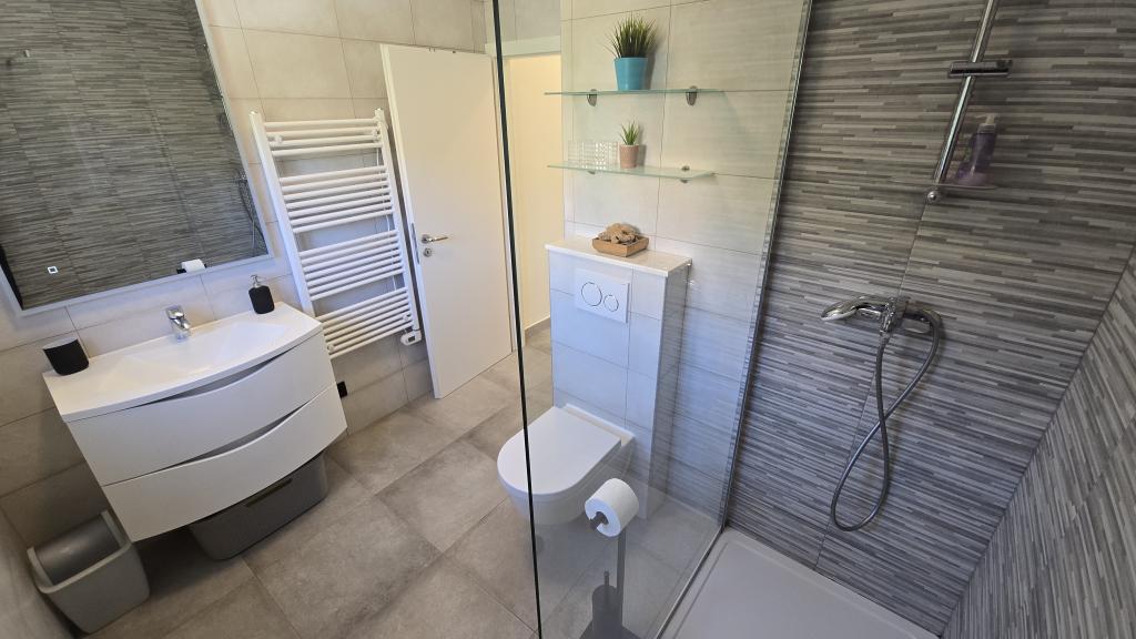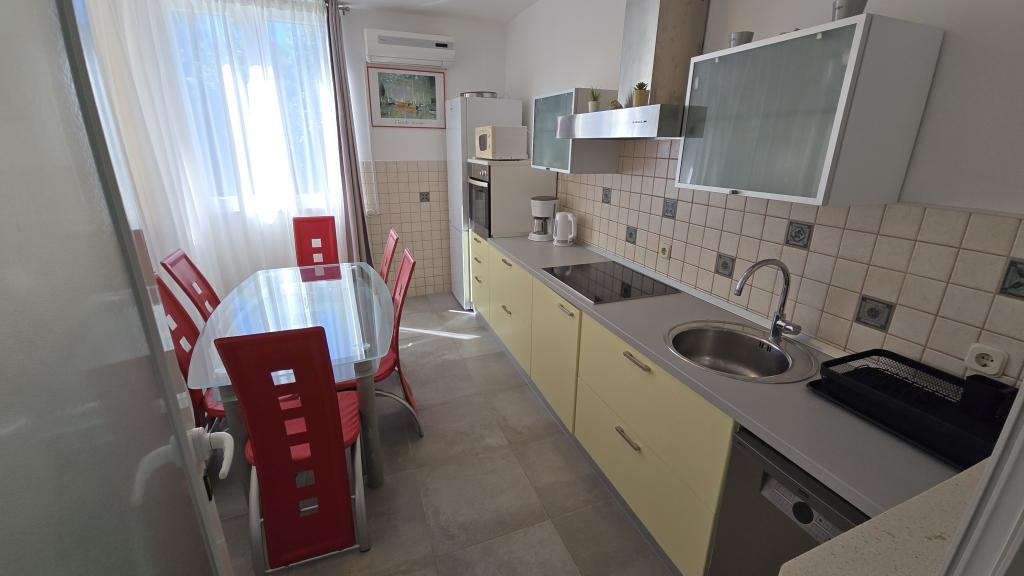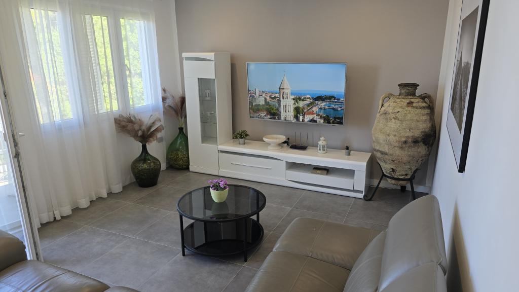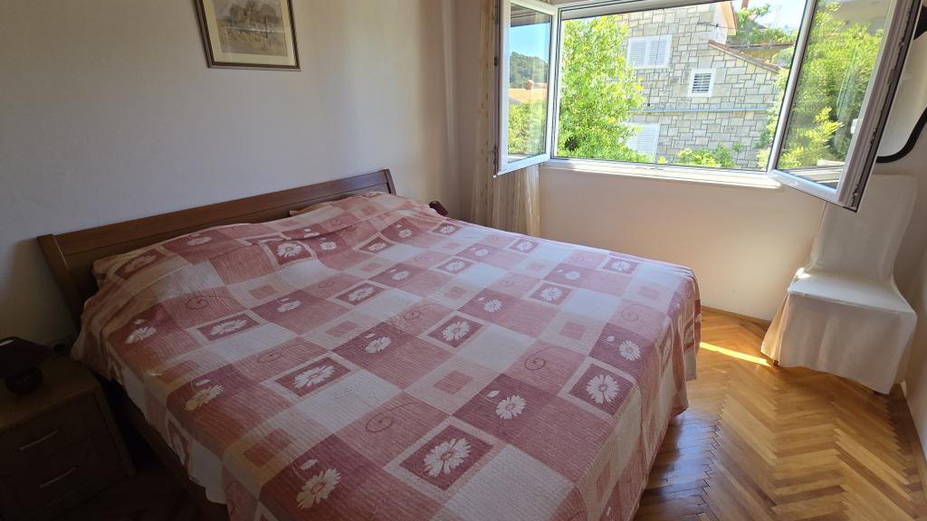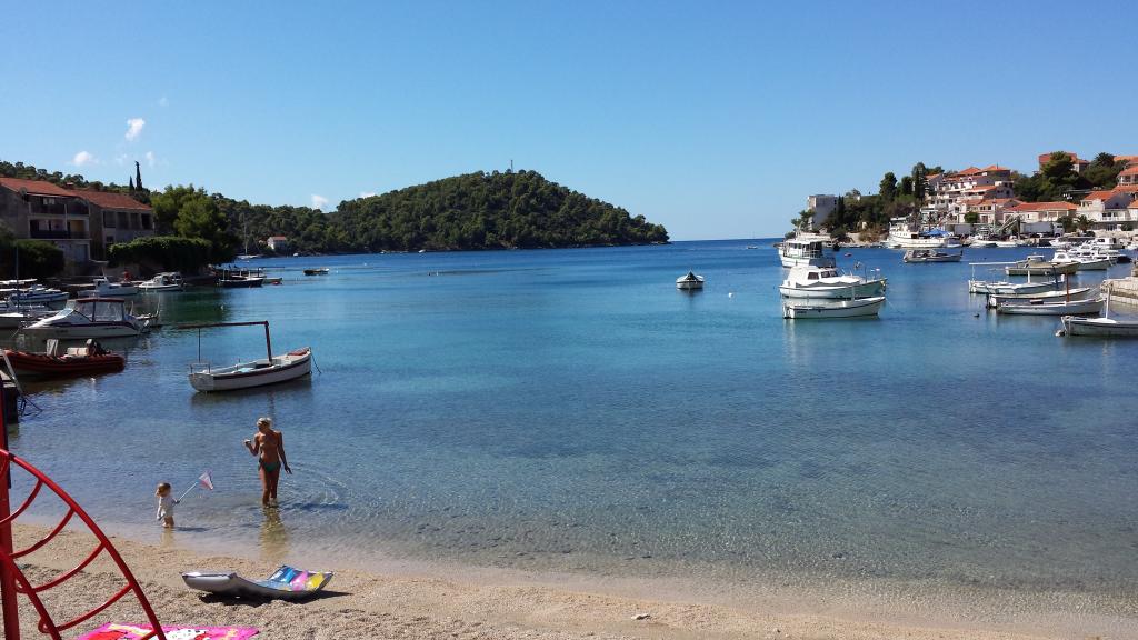 Das Apartment Antea liegt in einem ruhigen Teil der Bucht von Brna und ist ideal für Familien mit Kindern. Es befindet sich nur 40 m vom Strand entfernt. Die Wohnung liegt im ersten Stock und ist komplett ausgestattet. Sie verfügt über drei Schlafzimmer (insgesamt sechs Betten), eine Wohnküche, ein 27 m² großes Wohnzimmer und zwei Badezimmer (eines davon mit Waschmaschine). Vier Klimaanlagen sorgen für angenehme Temperaturen. Die Küche ist ausgestattet mit einem großen Kühl-/Gefrierschrank, einem Elektroherd, einer Mikrowelle, einer Kaffeemaschine, einem Wasserkocher und einem Geschirrspüler. Von den zwei Terrassen aus genießen Sie einen wunderschönen Meerblick. Im Außenbereich des Hauses befindet sich ein Grillplatz. Im geschlossenen Innenhof stehen drei Parkplätze zur Verfügung.