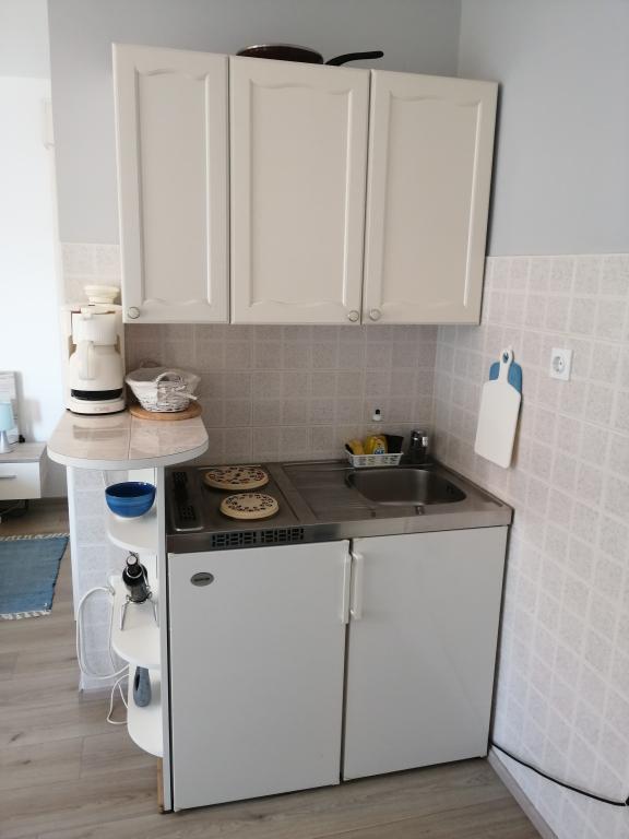 Unsere Apartments befinden sich in der ersten Reihe zum Meer in einer wunderschönen Bucht in Brodarica, die einen Blick auf die kleinste Insel der Adria bietet - Krapanj. Wir bieten 2 Studio-Apartments mit voll ausgestatteter Küche, Bad mit Dusche, kostenlosem Internet und Parkplatz sowie die Möglichkeit, den Grill zu nutzen. Wir haben auch einen zusätzlichen Liegeplatz für ein Boot. In unmittelbarer Nähe befinden sich zahlreiche Cafés, Pizzerien, Geschäfte und Restaurants. Ebenfalls im Umkreis von 100 m gibt es eine Arztpraxis, ein Postamt, einen Fährhafen, der regelmäßig zur Insel Krapanj fährt, und eine Bushaltestelle für die Stadt Sibenik. Ein idealer Ausgangspunkt für die nahe gelegenen Nationalparks Krka und Kornati sowie für die Stadt Šibenik, die eine reiche Kultur sowie verschiedene kulturelle und historische Denkmäler bietet. Wenn Sie sich für unsere Apartments entscheiden, sind wir sicher, dass Sie einen angenehmen und unvergesslichen Urlaub verbringen werden.