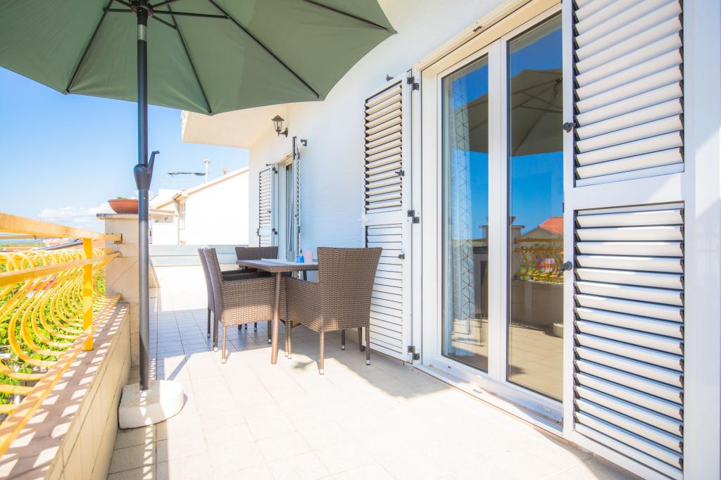 Familienhaus mit zwei Wohnungen mit wunderschönem Meerblick. Die Apartments sind zwei Minuten zu Fuß vom Strand entfernt. Alle Wohnungen sind klimatisiert.