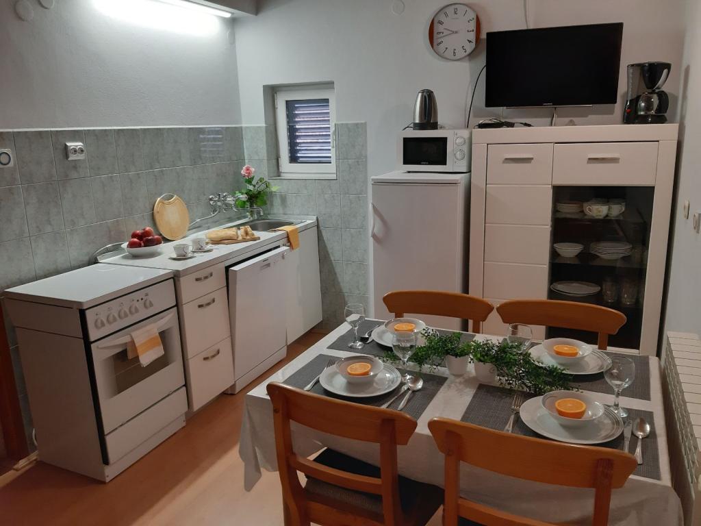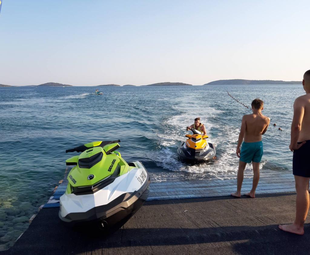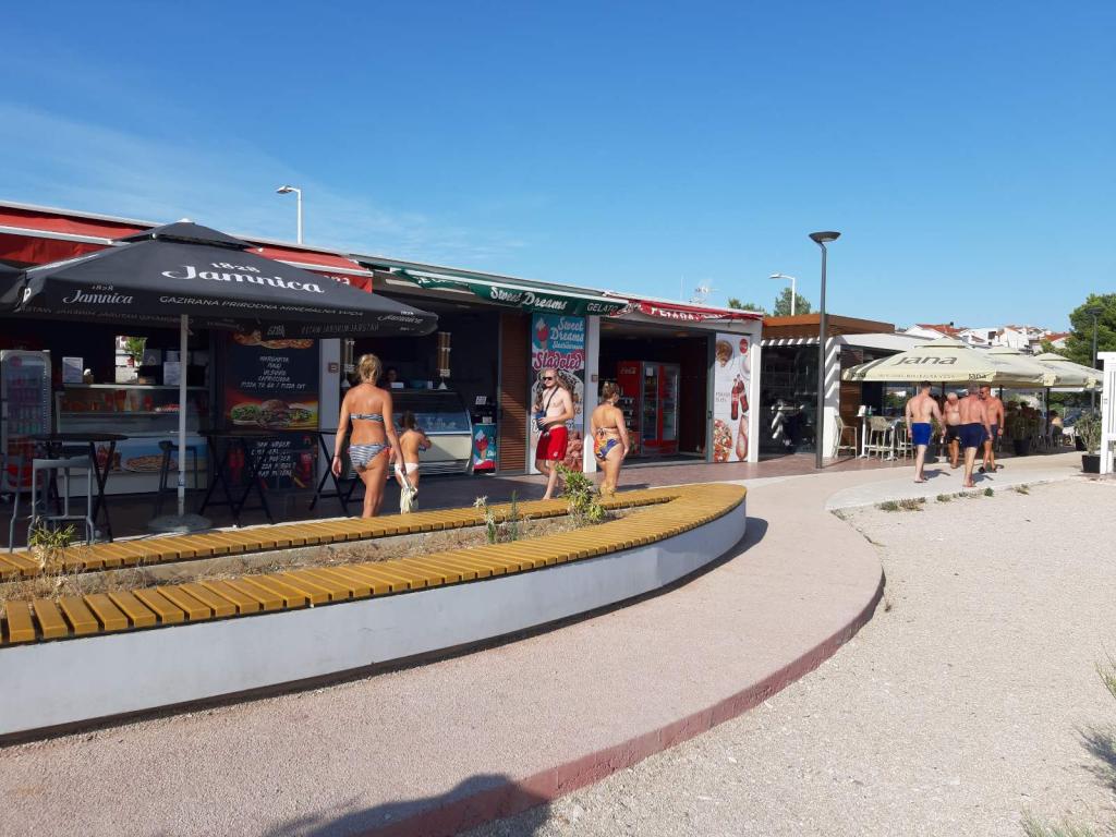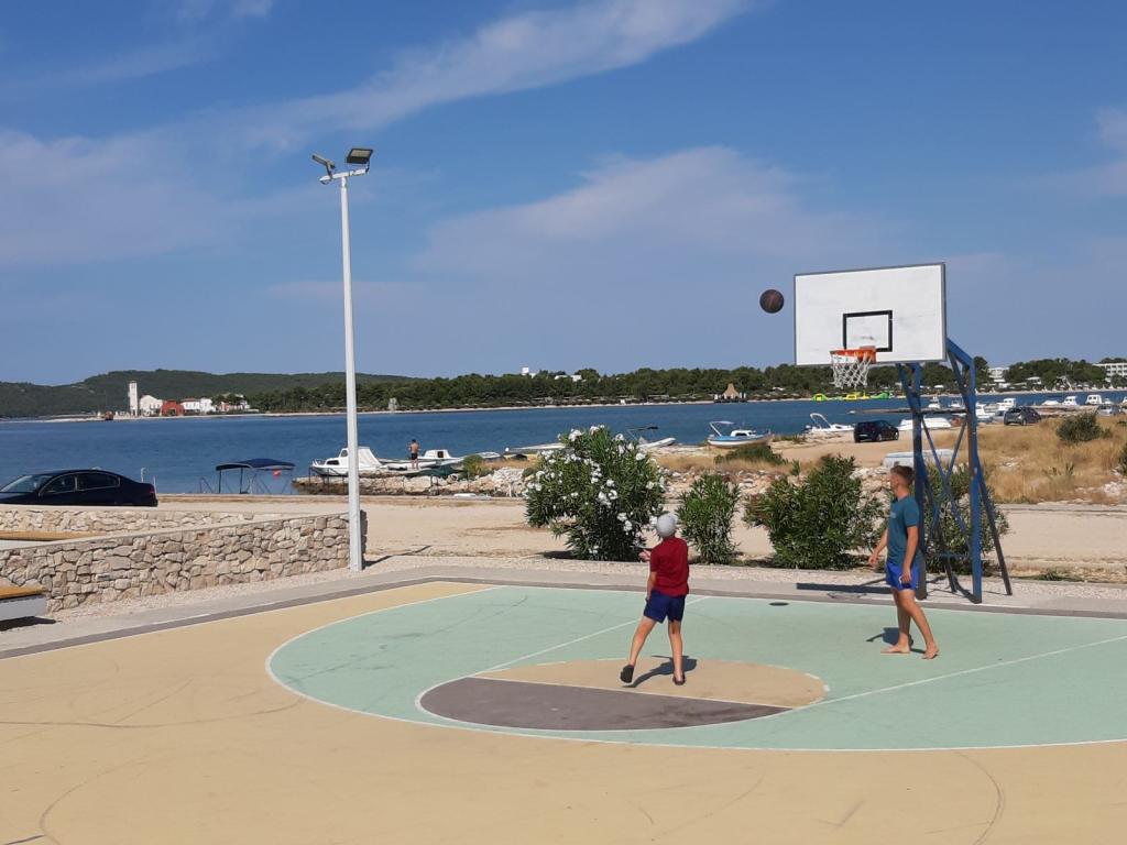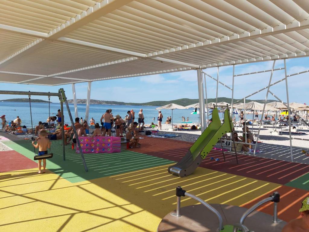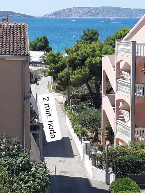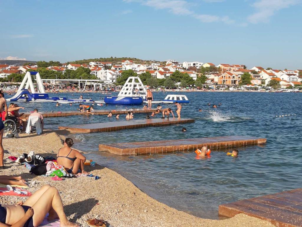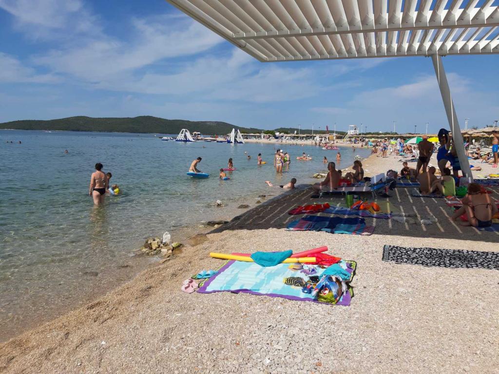 Die Apartments befinden sich in einem ruhigen Teil von Brodarica, 150 m (2 Gehminuten entlang einer ebenen Straße ohne Gefälle) vom Hauptkieselstrand entfernt, in dessen Nähe sich zahlreiche kleinere Kieselstrände für mehr Privatsphäre befinden. Das Haus ist von viel Grün und Blumen umgeben und bietet kostenlose Parkplätze im Schatten für Gäste. Die Apartments sind klimatisiert, jedes Zimmer verfügt über ein eigenes Bad, eine große Terrasse/einen Balkon mit Blick auf das Meer und die Inseln, ausgestattete Küchen, Geschirrspüler, Mikrowelle, Grill, Wasserkocher, WLAN und kostenlose Parkplätze. Türen und Fenster sind mit Moskitonetzen geschützt. 100 m vom Apartment entfernt befinden sich das nächste Geschäft, eine Bäckerei, ein Fastfood-Restaurant und Cafés. Große Einkaufszentren für Lebensmittel, Kleidung, Schuhe usw. befinden sich 2 km vom Apartment entfernt. Am Strand gibt es einen schattigen Kinderspielplatz, Beachvolleyball, Basketball, Outdoor-Fitnessgeräte, Toiletten, Duschen, Jetski und einen Bootsverleih. Das Apartment für 4 Personen verfügt über 2 Schlafzimmer, 2 Badezimmer, eine Küche und eine große Terrasse mit Blick auf das Meer und die Inseln. Auf der Terrasse befinden sich Liegestühle und ein Grill.