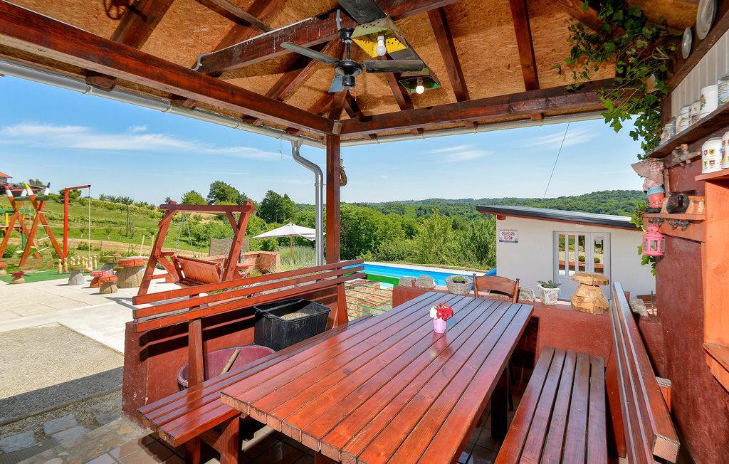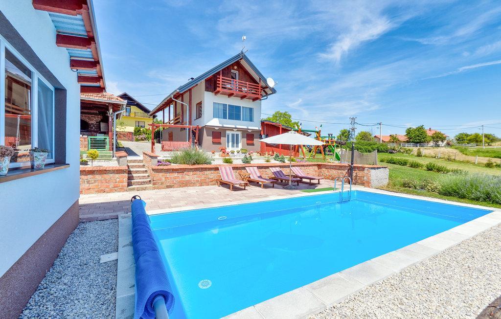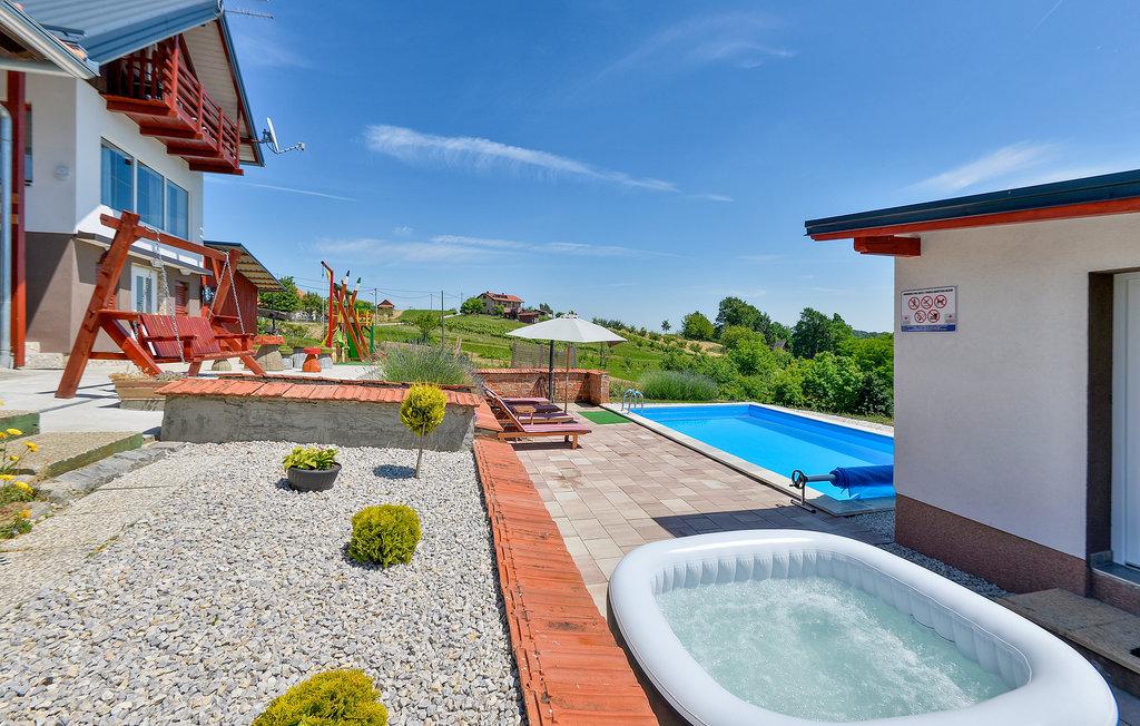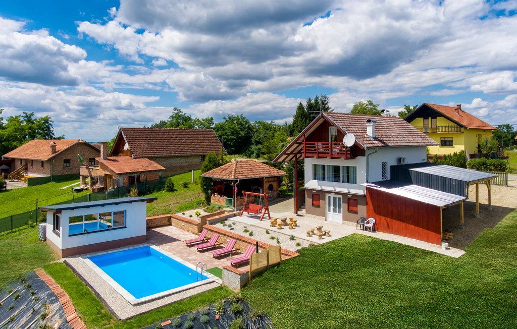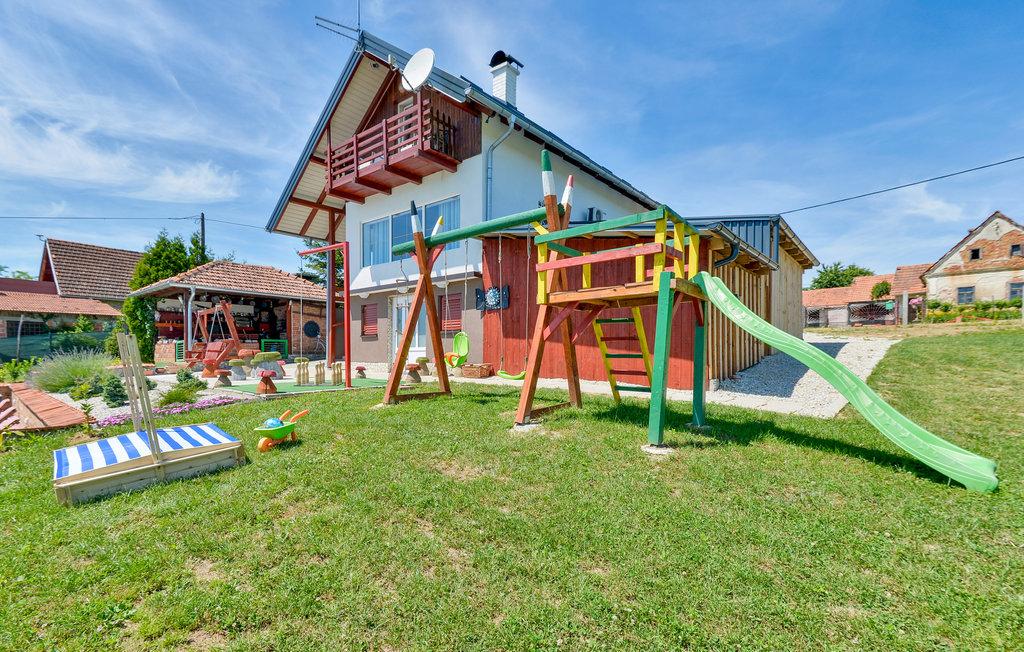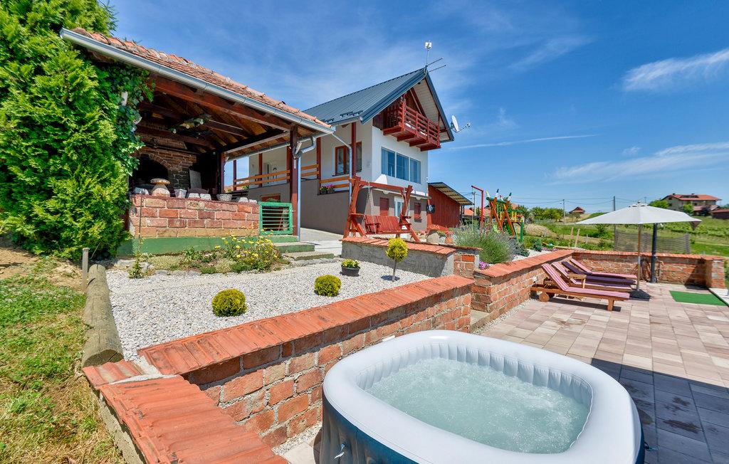 Das Ferienhaus liegt im hügeligen Teil von Međimurje, einer Oase der Ruhe, des Friedens, der Stille und der unberührten Natur. Eine wunderschöne Aussicht auf die Natur und das Grün, saubere Luft beim Genießen des 8 x 4 Meter großen Swimmingpools mit Liegewiese, Whirlpool, Sauna innerhalb der Anlage, Kinderspielplatz, Seilrutsche, Hängekegelbahn, elektronische Darts, Teich mit der Möglichkeit zum Sportfischen Ihr eigenes Grundstück, Außengrill und Grill in einem halbgeschlossenen Bereich. Möglichkeit der Nutzung von Sportfahrrädern – eine nahegelegene Radstrecke von 20 Kilometern Länge