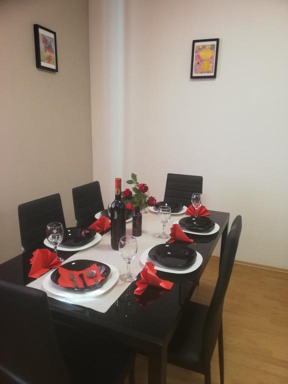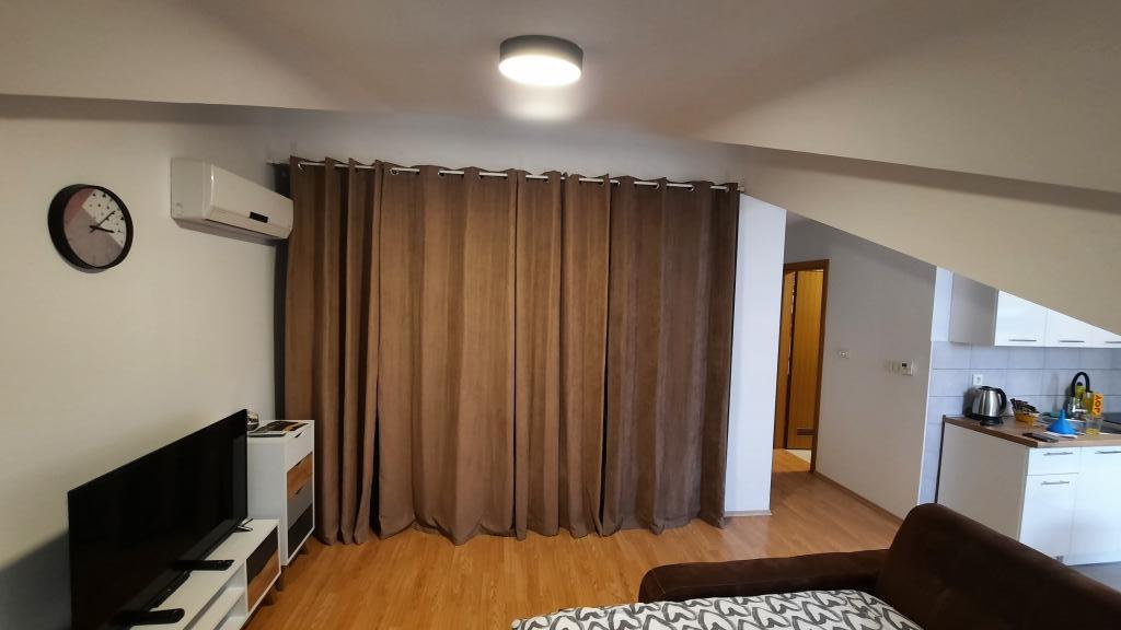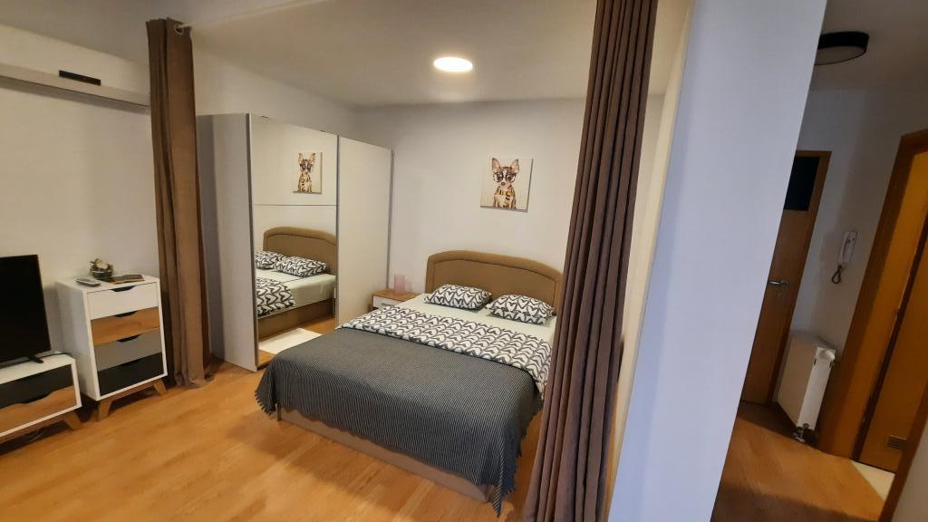 Die Apartments befinden sich in einem neuen Wohnhaus im Stadtzentrum, aber in einer ruhigen Umgebung. Die Wohnung ist modern eingerichtet und bietet alles was man zum Wohlfühlen braucht. Die Küche ist mit allen notwendigen Geräten und Utensilien zum Kochen und Verzehren von Speisen ausgestattet. Ihnen steht ein großer 3D-Fernseher von LG mit aktiver 3D-Brille und einer großen Filmsammlung zur Verfügung. Das Schlafzimmer ist als separater Raum eingerichtet und bietet einen intimen Raum. Am Eingang des Gebäudes befindet sich ein Safe für Schlüssel, der den Gästen einen gewissen Komfort bietet.