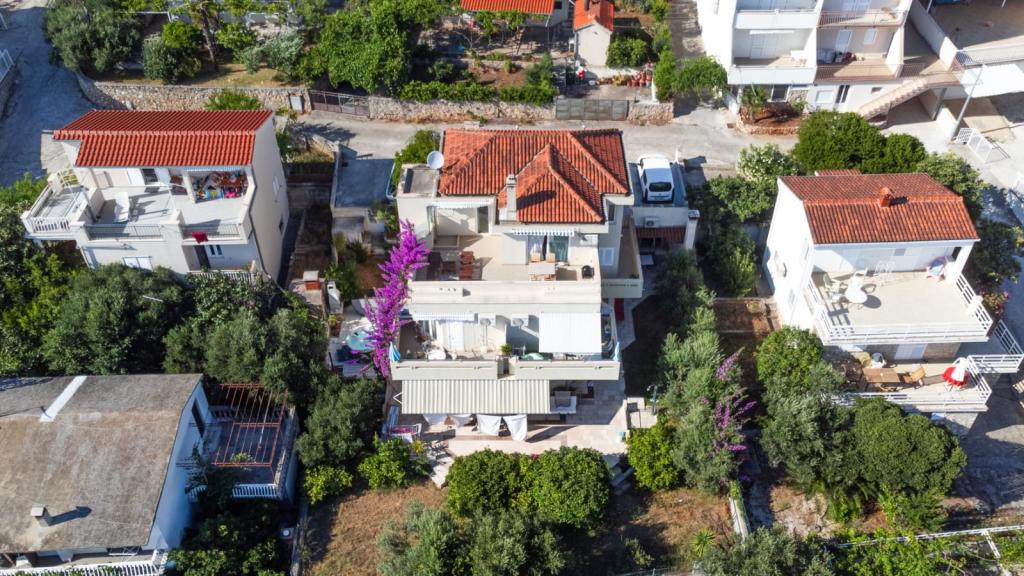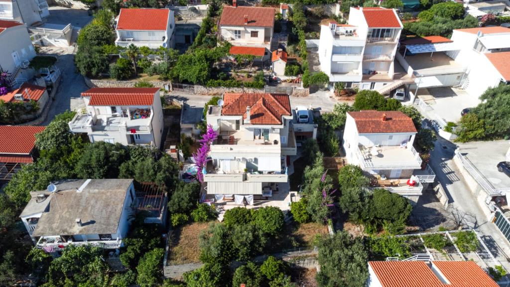 In unmittelbarer Nähe des Meeres und des Pinienwaldes, auf der Südseite der Insel Čiovo, zwei Wohnungen im ersten Stock eines Familienhauses, mit Blick auf die Inseln Brač, Hvar, Šolta, Drvenik und unendlich. Beide Wohnungen sind luftig, nach Süden und Osten (Levante) und Westen (Ponente) ausgerichtet und mit hochwertigen Materialien und Geräten ausgestattet. Ein Schlafzimmer mit essentiellen Linien, mit einem Bett mit den Maßen 160x200 cm, einer erstklassigen Matratze und einer Matratzenauflage mit Memory-Schaumstoff und natürlich einer sorgfältig ausgewählten Bettwäsche garantiert Ihren Komfort. Das Badezimmer ist so ausgestattet, dass es Ihnen garantiert an nichts fehlt. Zusätzliche Entspannung wird sicherlich durch ein gemütliches Wohnzimmer mit einem Sofa (mit der Möglichkeit eines ausziehbaren Sofas), einem 40-Zoll-Fernseher und einer Küche, in der Sie Ihre Lieblingsrezepte aufbewahren können, unterstützt. Ein Balkon für den morgendlichen Kaffee und den abendlichen Aperitif, die Möglichkeit zur gemeinsamen Nutzung eines Grills, ein Gartentisch und eine Außendusche sorgen garantiert für gute Sommerlaune. Wir sind hier, Sie sind nur einen Klick von uns entfernt!