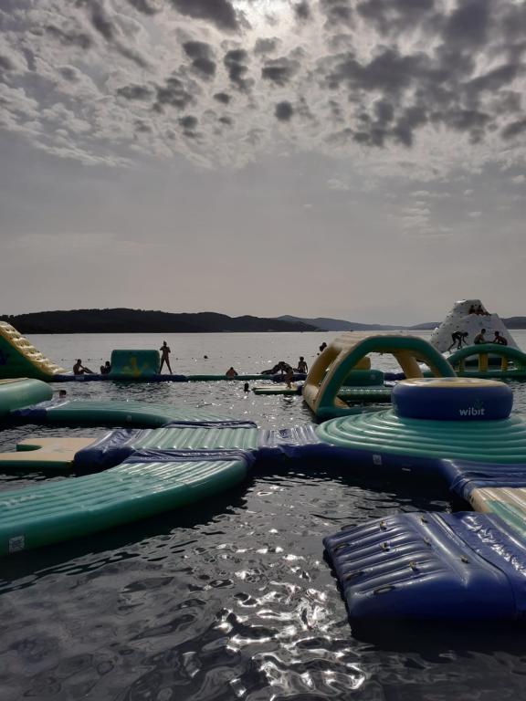Kurtaxe ist im Preis inbegriffen. Buchungsbestätigungsdokument bei ReservierungDie kroatische Perle der Adria mit beeindruckender Geschichte, die Stadt Trogir, die auf der Liste des UNESCO-Weltkulturerbes steht, ist nur 5 Kilometer von Ihnen entfernt. Auf der anderen Seite ist Split, das mit dem Auto oder mit dem Boot erreichbar ist, nur 20 km entfernt. Diese Diokletianstadt stammt aus dem 4. Jahrhundert n. Chr. und steht seit 1979 unter dem Schutz der UNESCO, was weltweit einzigartig ist. Die Schönheit der sieben Travertin-Wasserfälle, ein Natur- und Karstphänomen des Nationalparks Krka (50 km), wird Ihnen sicherlich für immer in Erinnerung bleiben. Zahlreiche Veranstalter auf der Insel bieten Ausflugsdienste zu nahegelegenen Inseln und Lagunen an. Eine Tauchschule befindet sich ebenfalls in der Nähe. In unmittelbarer Nähe unserer Wohnung, eingebettet in einen Pinienwald, befindet sich der wunderschöne Weiße Strand (Vela Draga).