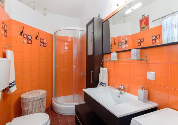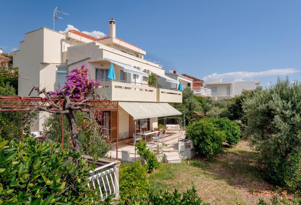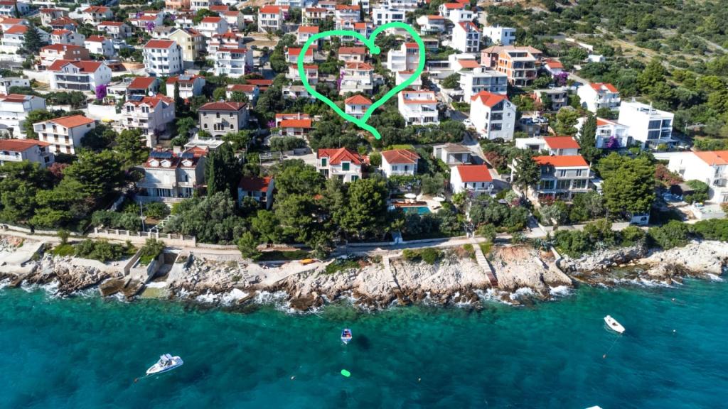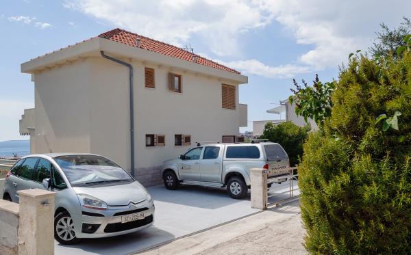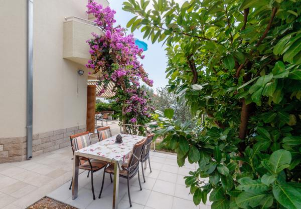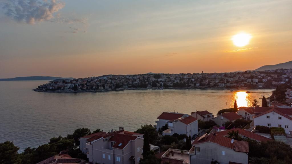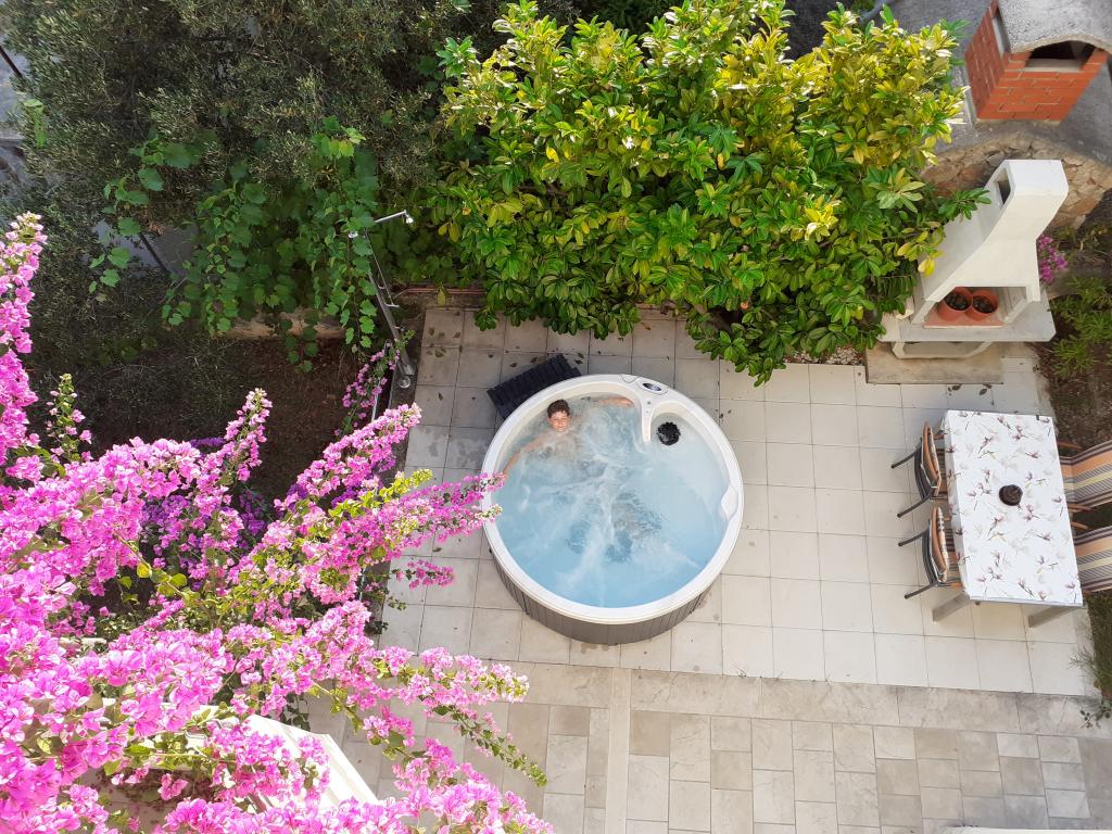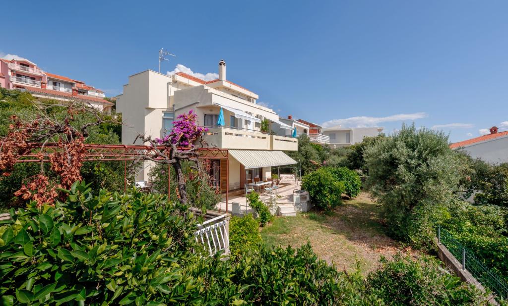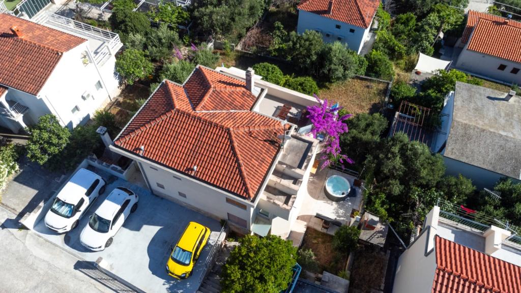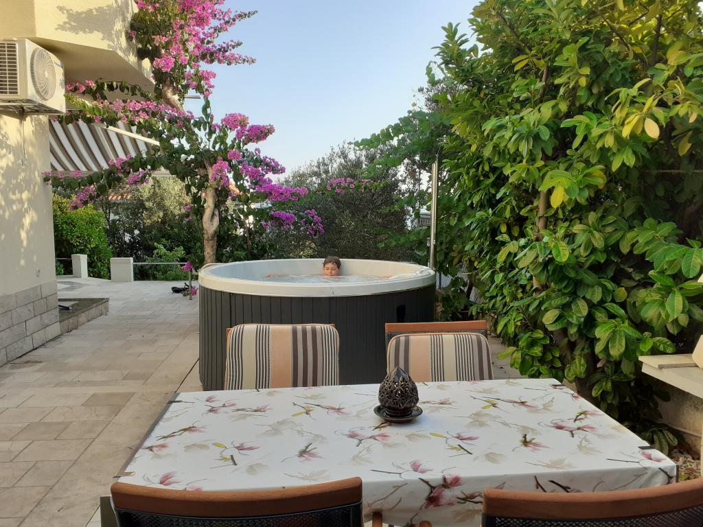 Wir wohnten mit zwei Erwachsenen und zwei Teenagern für eine Woche im Juni in der großen Wohnung im zweiten Stock. Alles war perfekt: das Wetter, das Meer, das Haus, aber vor allem unsere liebste Nina, freundlich, nett, hilfsbereit, immer bereit zu helfen, Anweisungen und Vorschläge zu geben, ein Getränk anzubieten. Die Wohnung ist wunderschön, sehr sauber, komfortabel und mit allem ausgestattet, was Sie für einen Familienurlaub benötigen. Wir fühlten uns wirklich wie zu Hause, sogar viel besser! Die Betten sind sehr bequem und die Kissen sind wunderbar! Wir haben so gut geschlafen und ausgeruht!! Die Küche ist gut ausgestattet, das Badezimmer hat eine Dusche und auch eine Waschmaschine und ist sehr schön, aber was uns vielleicht am besten gefallen hat, ist die große Terrasse, auf der man essen, einen Aperitif trinken und sogar duschen konnte, während man schaute das Meer und die vorgelagerten Inseln oder der fantastische und unvergessliche Sonnenuntergang! Wir haben unsere Augen mit außergewöhnlicher Schönheit gefüllt! Darüber hinaus stehen allen Gästen ein Whirlpool im Garten sowie ein Grill zur Verfügung. Ninas Vater, der tolle Leo, bot uns ein super mega gutes Abendessen und einen super Visnjevac (von ihm hergestellter Schwarzkirschlikör). Das Meer ist ganz in der Nähe, die ersten Strände sind 100 Meter entfernt, man kann dorthin bequem zu Fuß gehen, das Meer ist WUNDERBAR, die Farben Grün, Blau, Türkis, der berauschende Duft der Seekiefern, der Gesang der unermüdlichen Zikaden. Es gibt nicht viele Leute (zumindest nicht im Juni), also ist die Entspannung total! Die Strände sind felsig (hervorragend zum Tauchen) und die Verwendung von Badeschuhen wird empfohlen (oder sogar weiße Kieselsteine – der ganz nahe gelegene und berühmte Strand Vela Draga). Ein Besuch in Trogir (5 km) und Split (25 km) ist ebenfalls ein absolutes Muss. Es war alles so schön, dass wir gar nicht mehr weg wollten und auch im nächsten Jahr gerne wiederkommen würden. Danke, Nina, für alles!