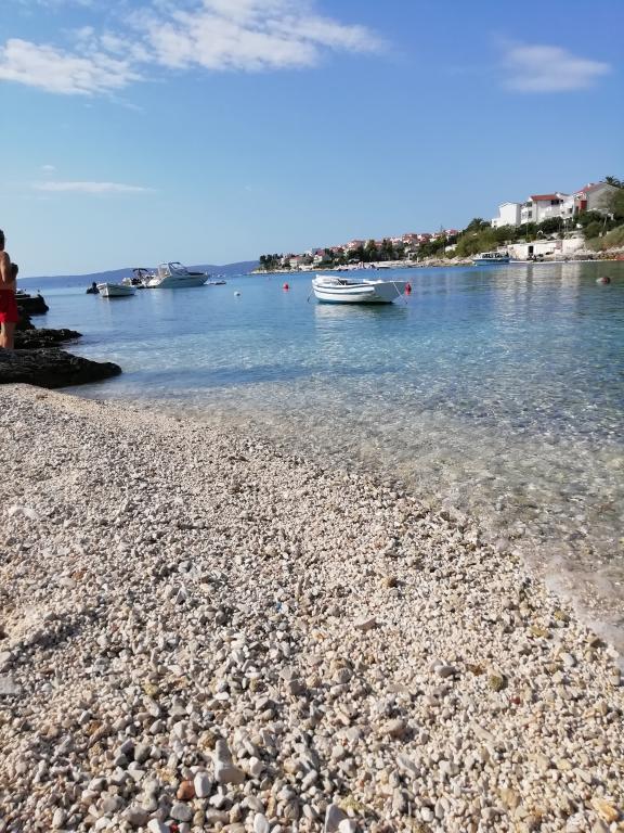 Die Wohnung ist liebevoll eingerichtet, die Küche ist komplett ausgestattet und Sie sind nicht weit vom Strand entfernt. Der Platz liegt etwas abseits der Partyszene, was uns sehr gut gefallen hat - wer es ruhig mag ist hier gut aufgehoben. Die nahe gelegene Tauchbasis bietet gute Preise und schöne Spots. Trogir und Split sind mit der Fähre erreichbar und einen Besuch wert! Einkaufsmöglichkeiten gibt es den Hügel hinauf in Okrug Gornji - entweder Sie gehen gerne zu Fuß oder Sie haben ein Fahrzeug. Die Gastgeber sind jedoch sehr hilfsbereit - boten an, uns in ihrem Auto zum Einkaufen mitzunehmen, was wir nicht benutzen mussten, da wir gerne zu Fuß gehen und keine großen Mengen kaufen mussten. Aber nochmals vielen Dank für den Flughafentransfer!