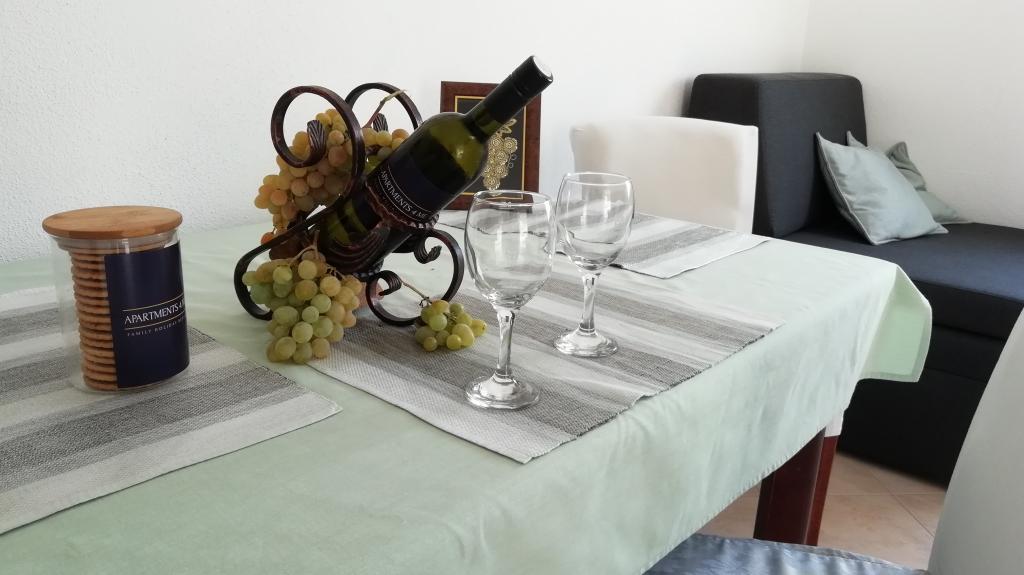 Die Wohnung ist schön eingerichtet, sauber und hat eine schöne große Terrasse. Die Besitzer der Apartments sind freundlich, zuvorkommend, alles Lob. Nicht weit von der Wohnung gibt es kleine Buchten, schöne Strände, sauberes, blaugrünes Meer. Auf jeden Fall empfehlen!