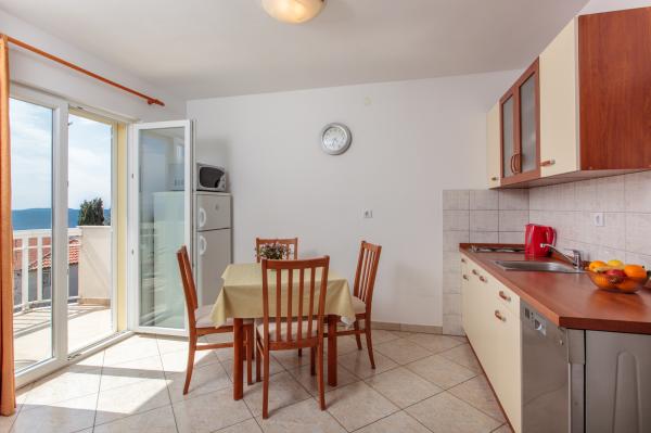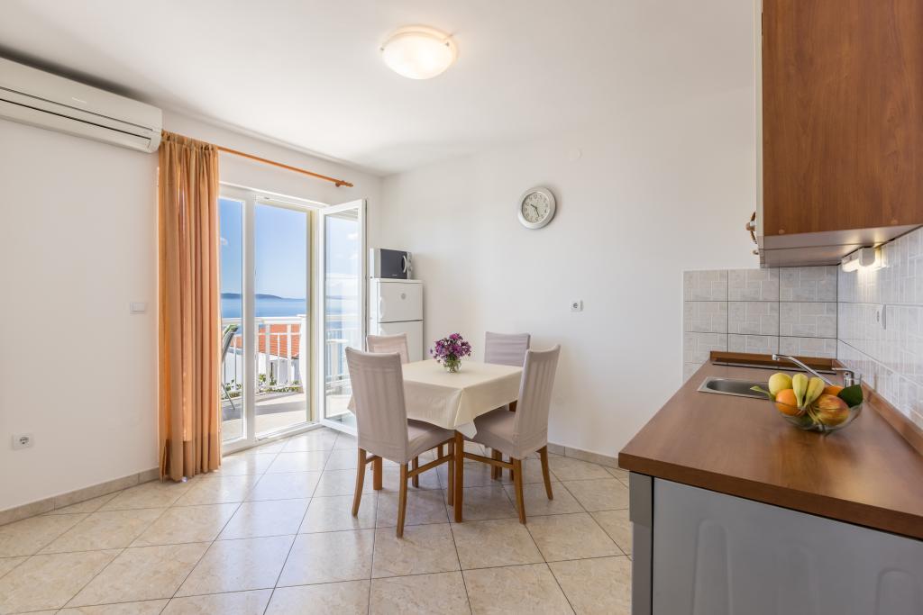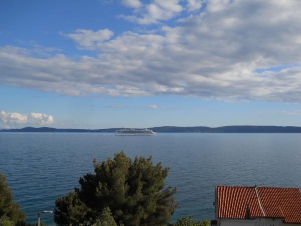 Wir waren im Juni 2022 Eine sensationelle Wohnung !!!!! Fantastische Ausstattung, Aufmerksamkeit - Geschirrspüler, Herd, Kühlschrank, sogar ein Toaster, Teller, alle notwendigen Dinge, alles sehr sauber, duftend. Das Bett im Schlafzimmer ist fantastisch, sauber! Balkon (Terrasse) bezaubernder Meerblick, natürlich ein Tisch, Sessel ein Traum und der Mondaufgang ... Parkplatz unter dem Haus, mehrere Dutzend Meter bis zum Meer, Strand, sanfter Abstieg, weitere Felsen und noch weiter hym..ein intimer Strand für diejenigen, die ein wenig Freiheit schätzen. Sehr nette Besitzer, Wir haben das Auto 6 Tage lang nicht bewegt. Ein Spaziergang morgens oder abends entlang der Küste, Meer, Meer und dann ein wenig bergauf und zum Zentrum von Okrug Gornyji, Post, Restaurant, Geschäften, Bäckerei und dann zurück am Meer ist auch schön (sie haben kaltes Bier im Geschäft). Es gibt auch Nachteile: Wir waren im Juni 2022 am Tag 29-33 Grad C nachts 26-29 Grad C mit Sonnenuntergang und Mondaufstieg. Zwei Mücken flogen, eine starb einen tragischen Tod, die andere entwischte .... aha Netze in den Schlafzimmerfenstern und Klimaanlage. Wir grüßen Sie Bożica Außendusche so offensichtlich, aber wie hilfreich und cool ........ nicht weit nach Trogir und Split! Der Nachteil von 1200 km