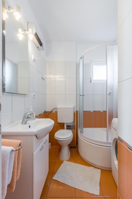 Fantastisches Apartment für 4-5 Personen. Sehr sauber, ordentlich und duftend. Die Wohnung verfügt über zwei Badezimmer, was den Komfort des Aufenthalts mit mehreren Personen erhöht. Es gibt auch eine Waschmaschine für Ihren eigenen Gebrauch. Ihnen steht eine große Terrasse zur Verfügung, auf der Sie nachmittags oder abends entspannen können. Der Strand (steinig - man muss also mindestens Matten mitnehmen, aber ich schlage vor, eigene Liegestühle zu haben) ist ganz in der Nähe, 3 Minuten zu Fuß von der Unterkunft entfernt, es gibt Plätze im Schatten und in der Sonne. Am Strand kann eine Liege gemietet werden - 30 Kuna / Tag / Stück. und Regenschirm 20 Kuna / Tag - Preise ab 07.2019. In der Nähe von Trogir, Split, Klis, Krk - so können Sie viel erkunden und viel in der Umgebung sehen. Gastgeber sehr freundlich, nett und immer lächelnd. Wir fühlten uns wie bei Freunden. Ich empfehle diesen Ort und diese besondere Unterkunft Wir werden auf jeden Fall wiederkommen. Vielen Dank für einen tollen Aufenthalt!