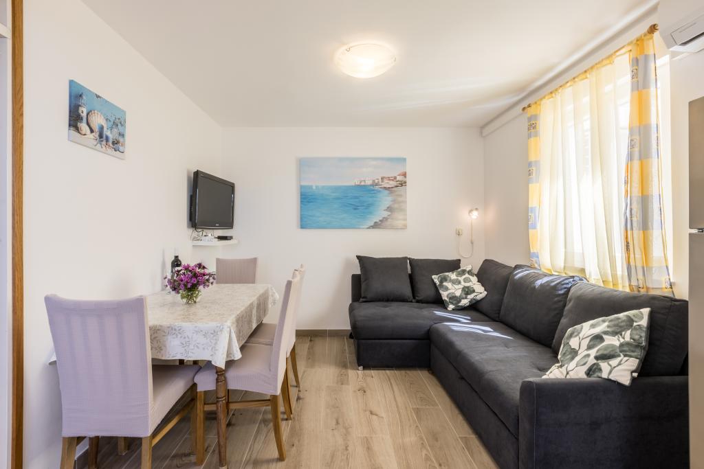 Eine tolle Wohnung, sauber, duftend und gut ausgestattet, perfekt für 4-5 Personen. Es besteht aus 2 Schlafzimmern, 2 Badezimmern (was bei einer so großen Anzahl von Personen viel Komfort bietet, insbesondere eine gute Option für zwei Ehepaare) und einer Küche (zusätzlicher Schlafplatz). Draußen eine große Terrasse, auf der Sie eine Mahlzeit einnehmen können in Stille und Entspannung. Der große Vorteil ist die Außendusche, wo man sich nach dem Strandbesuch abspülen kann. Die Gegend ist sehr ruhig und ruhig. Ein guter Ausgangspunkt für die nahegelegenen größeren Städte.Der Strand ist ganz in der Nähe, ca. 50 Meter. Die Besitzer der Wohnung - Marija und Ante, sind sehr nette und freundliche Gastgeber, die immer lächeln. Ich empfehle jedem aufrichtig, an diesem Ort zu bleiben. Wir hoffen, eines Tages für einen Urlaub zu Ihnen zurückzukehren. Vielen Dank für einen schönen Aufenthalt.