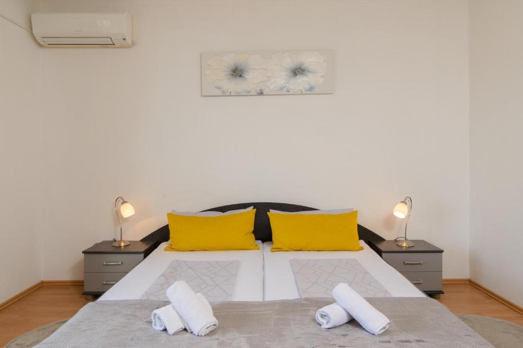 Die Apartmani Branka liegen nur 4 Gehminuten vom Strand der Copacabana entfernt und bieten einen Garten sowie klimatisierte Unterkünfte mit Balkon und kostenfreiem WLAN. Jede Wohneinheit verfügt über eine Terrasse mit Meerblick, Sat-TV, einen Essbereich, eine gut ausgestattete Küche und ein eigenes Badezimmer mit Badewanne und Haartrockner. Ein Kühlschrank, ein Backofen, ein Kochfeld und ein Wasserkocher sind ebenfalls vorhanden. Der Archäologische Park Salona ist 26 km und das Park-Mladeži-Stadion 29 km von den Apartmani Branka entfernt. Der Flughafen Split ist 6 km entfernt; ein kostenpflichtiger Flughafentransfer wird angeboten.