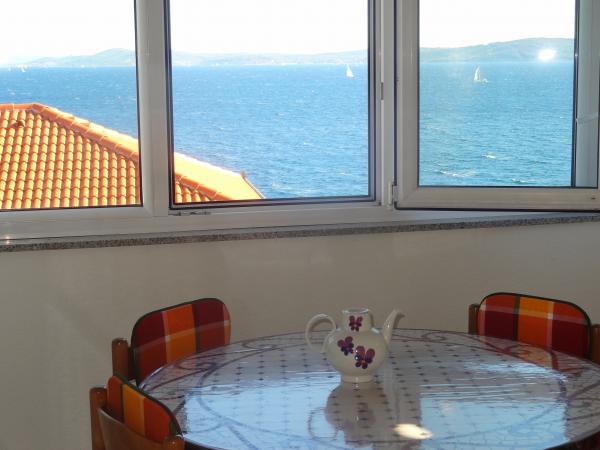 Das Haus ist auf 3 Ebenen. Jede Etage hat einen eigenen Eingang, Parkplatz und Balkon mit Tisch und Stühlen. Wohnung Nr. 1 (erste Etage) hat ein Zimmer mit einem Doppelbett und ein Wohnzimmer mit einem Doppelbett im Klick-Klack. Wohnung Nr. 2 (zweite Etage) hat ein Zimmer mit Doppelbett und Wohnzimmer (Einzelzimmer) mit Luxus-Schlafsofa (160x 200) für zwei plus blagavona. Ap-Nr. 3 ist auf der dritten Etage hat ein Doppelbett und das. Wohnzimmer (Privatzimmer) mit Luxus-Sofa (160 X200) für zwei plus Essen. Das Meer und der nächste Strand ist genau 70 Meter. Das Haus hat einen Blick auf das offene Meer und die Inseln. Zu Fuß können Sie den Markt für 3 Minuten, 5 Minuten Restaurants, Kirchen, Supermärkte, Märkte, Banken und Ärzte erreichen Sie in 15 Minuten zu erreichen. Aeodrom ist udaljen10 Kilometer. Apartments sind gut ausgestattet. Sie sind 60 Meter zum Strand entfernt, in einer ruhigen südlichen Sonnenseite von Ciovo. Mit einem erschwinglichen Preis und mit einem reichen kulturellen Unterhaltung verbringen Sie Ihren Urlaub .