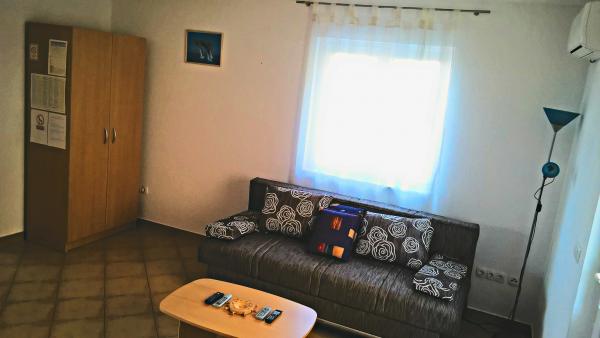 Die Wohnungen sind sehr schön eingerichtet und sauber. Sie haben auch einen großen Balkon / Terrasse auf der Nordseite, wo den ganzen Tag über angenehme Temperatur mit sanften Brise. Die Gastgeber sind freundlich und hilfsbereit. Am Strand gibt es auch einige Schatten. Kurz gesagt empfehle ich allen, die eine gute Erholung wünschen.
