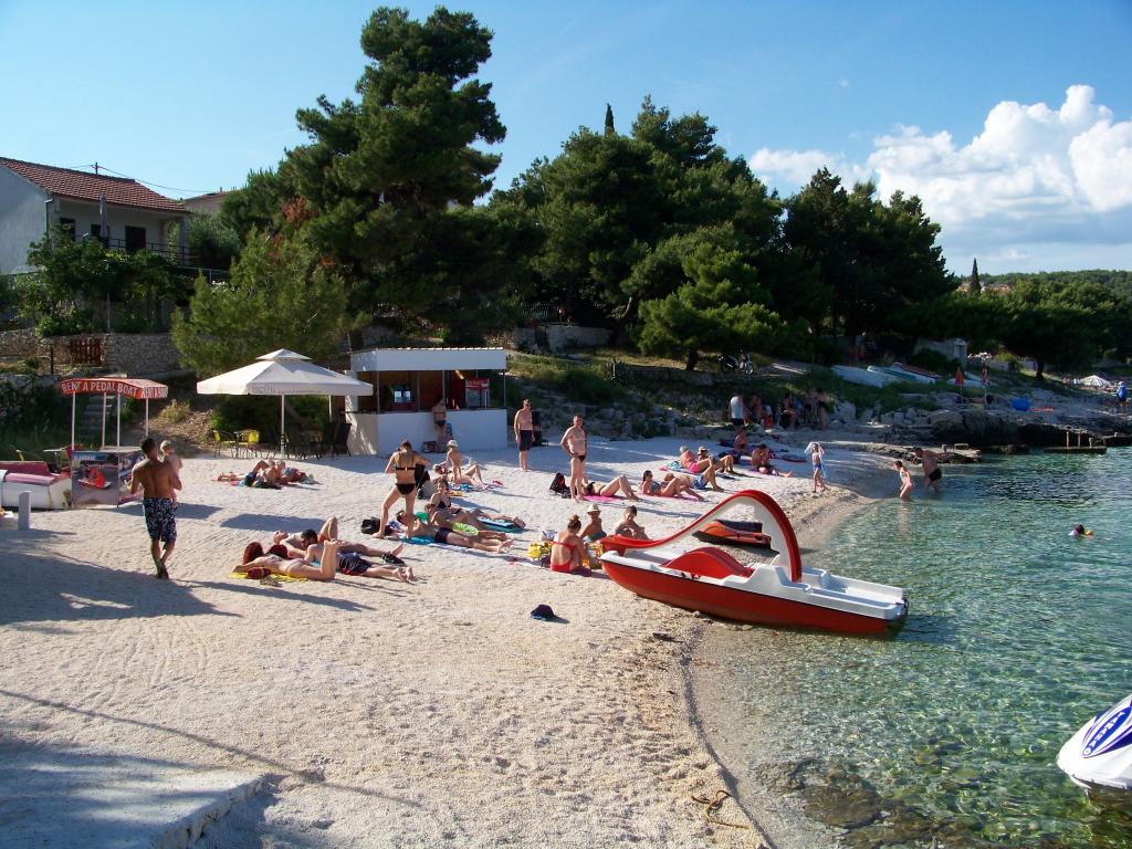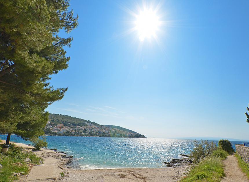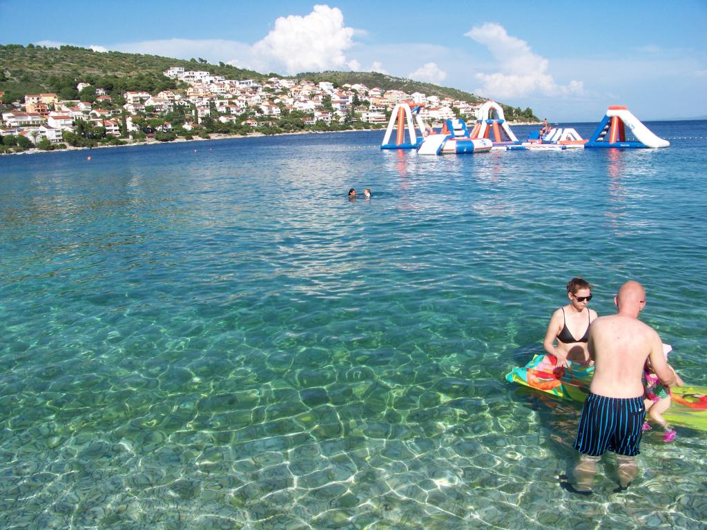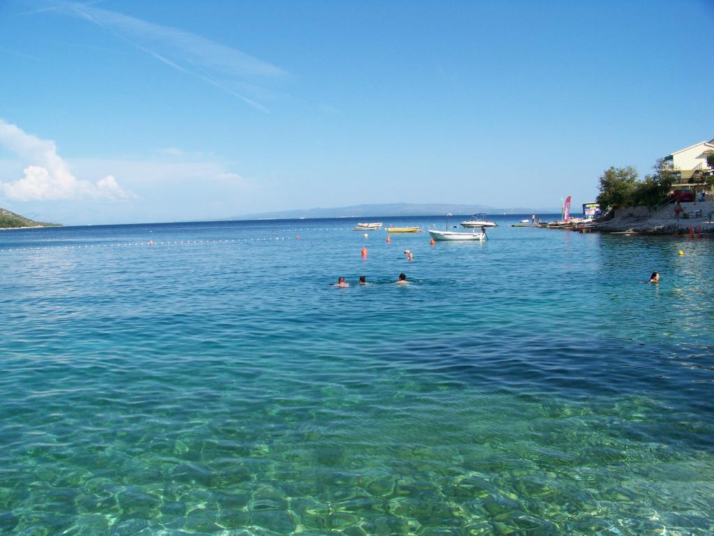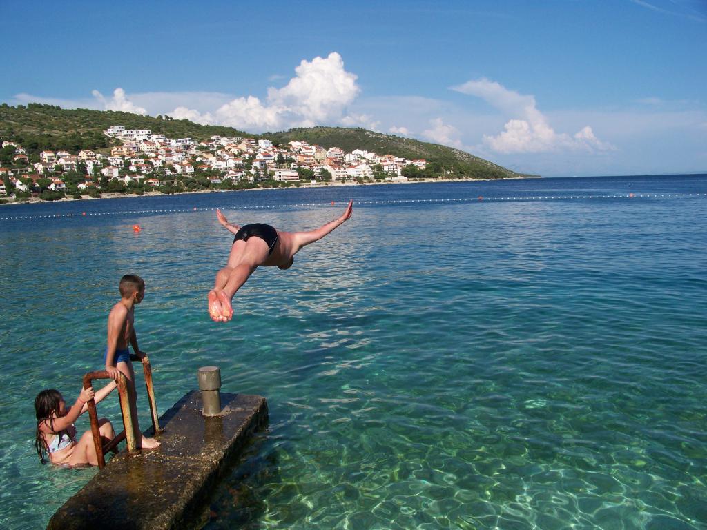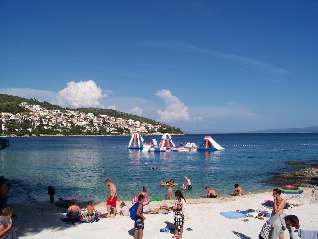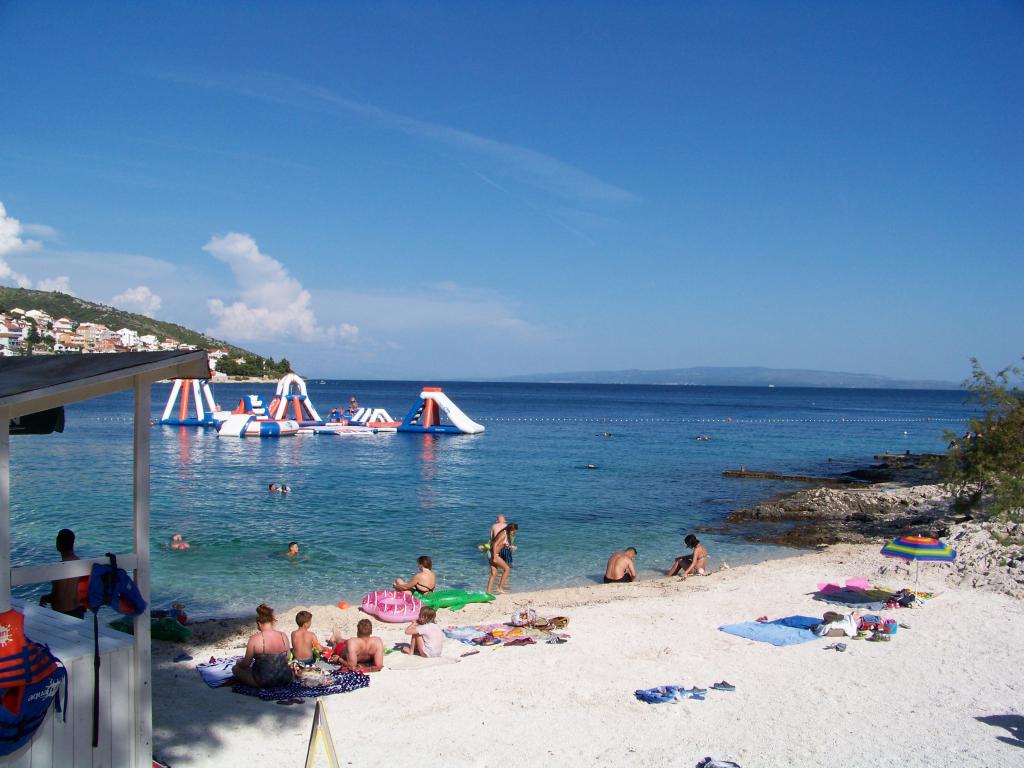 Ciovo, Südseite, Bucht Mavarštica, wir vermieten neue Apartments für 3–4 Personen, SAT-LED-Samsung-Fernseher 32 (82 cm), DVD, Mikrowelle, Mixer, Klimaanlage, schnelles optisches WLAN-Internet. Alle Wohnungen verfügen über eigene Parkplätze im Schatten, einen Grill und sind nur 50 m vom Strand (Bild) entfernt, der für kleine Kinder geeignet ist. Die Apartments liegen 4 km von Trogir entfernt, einer Stadt voller Denkmäler, die unter dem Schutz der UNESCO stehen. Alle Wohnungen verfügen über eine große Terrasse mit Meerblick und einen weiteren Balkon im Schlafzimmer. Die Entfernung zum nächsten Restaurant beträgt 70 m. Die Entfernung zum Aquapark beträgt 100 m. Die Entfernung zum nächsten Geschäft beträgt nur 400 m. Die nächste Apotheke, Geldautomat, großer Supermarkt, Markt und Geldautomat sind 900 m entfernt. Zur kostenlosen Verfügung stehen Ihnen: eine Gartenschaukel, eine große Kinderschaukel aus Holz, eine zusätzliche Gartendusche, eine Sitzbank beim Grill und ein Sonnenschirm für die Terrasse. Den Gästen steht im Hof eine Tischtennisplatte der Marke Sponeta mit Schlägerset sowie elektronische Darts zur Verfügung. Polnisch, Deutsch, Englisch, Französisch, Spanisch, Italienisch ... Auf dem Smart-TV können frei empfangbare SAT-Programme angesehen werden. Außerdem ist die Anwendung GoNet TV (Lepša TV) installiert, mit der die Gäste slowenische, tschechische, slowakische, ungarische und ukrainische Programme ansehen können.