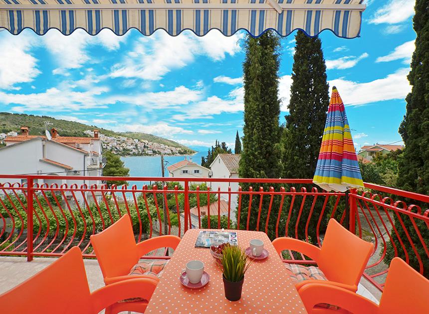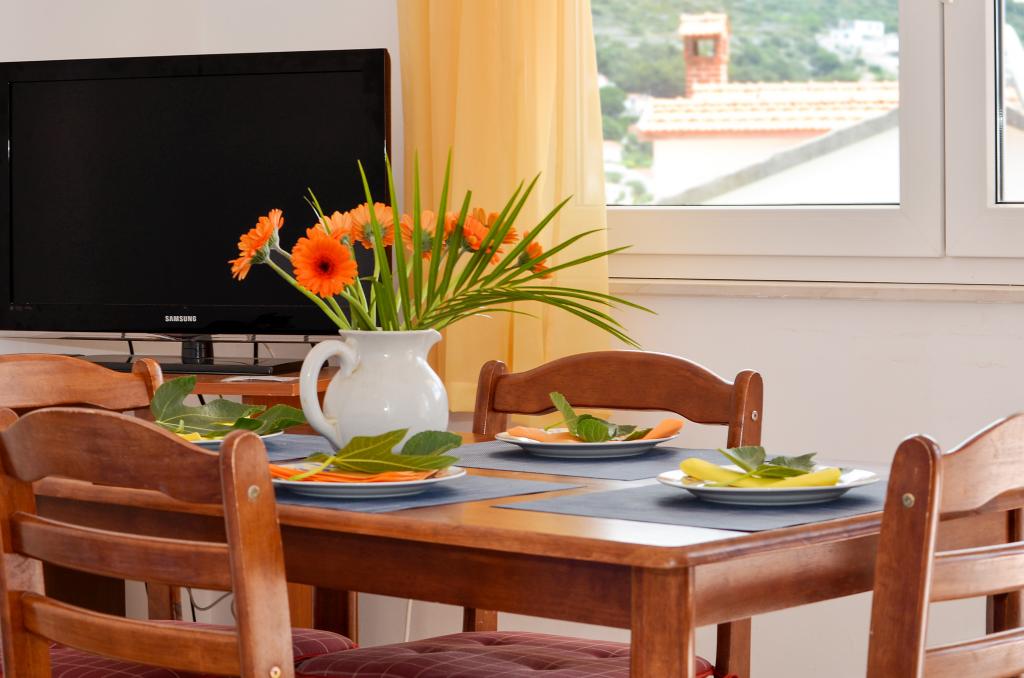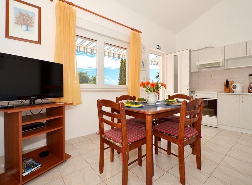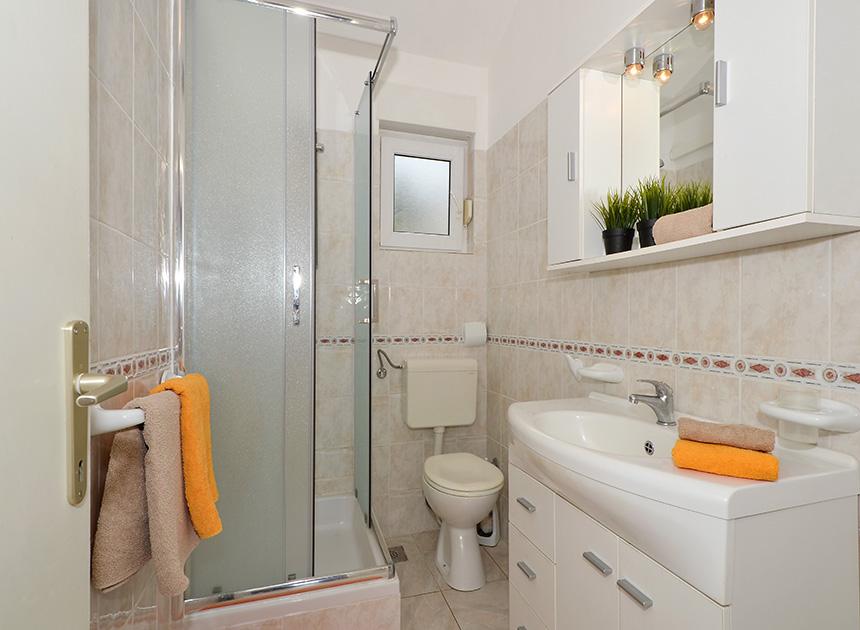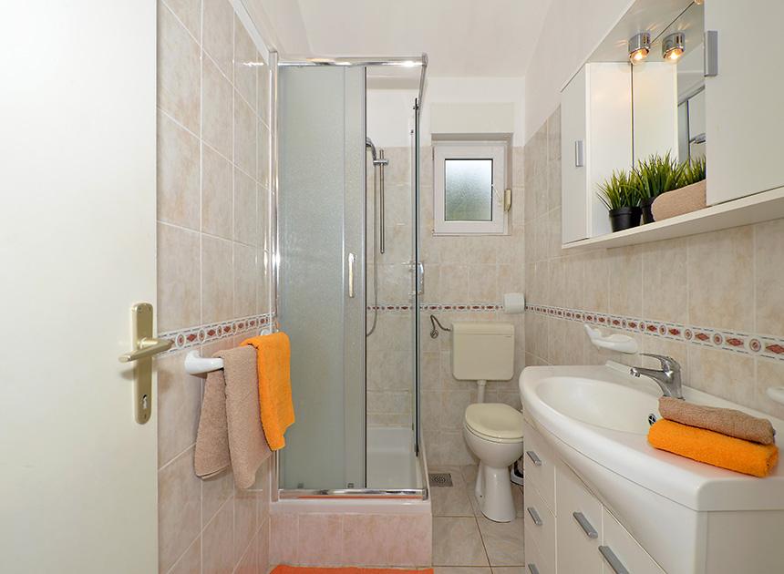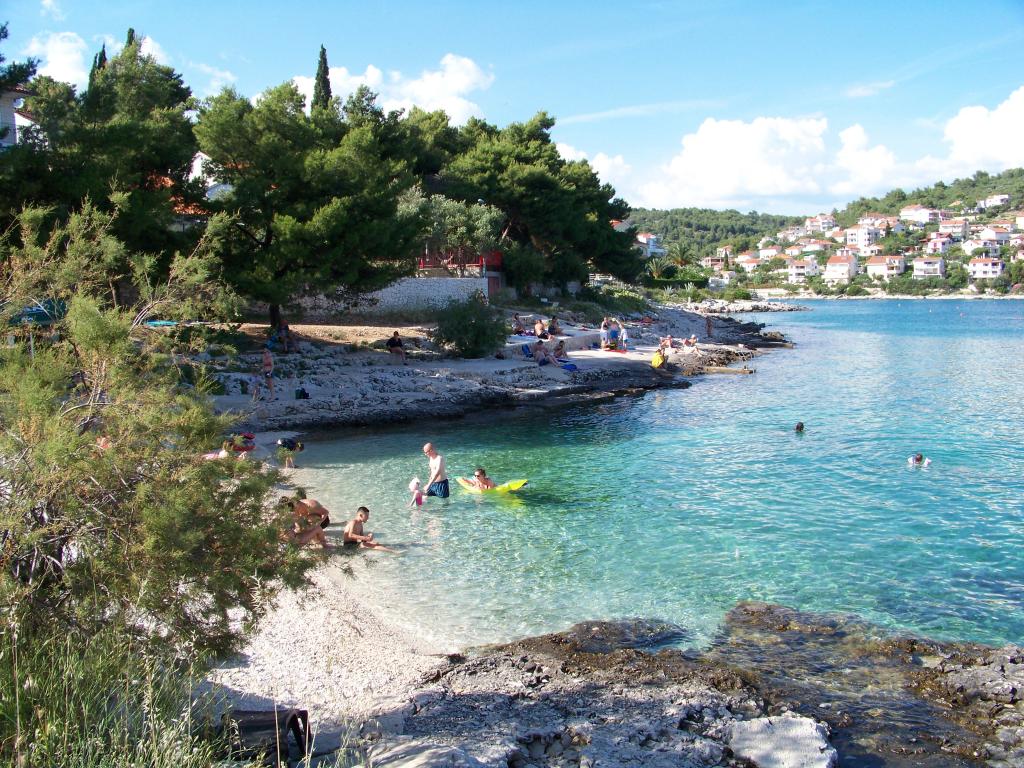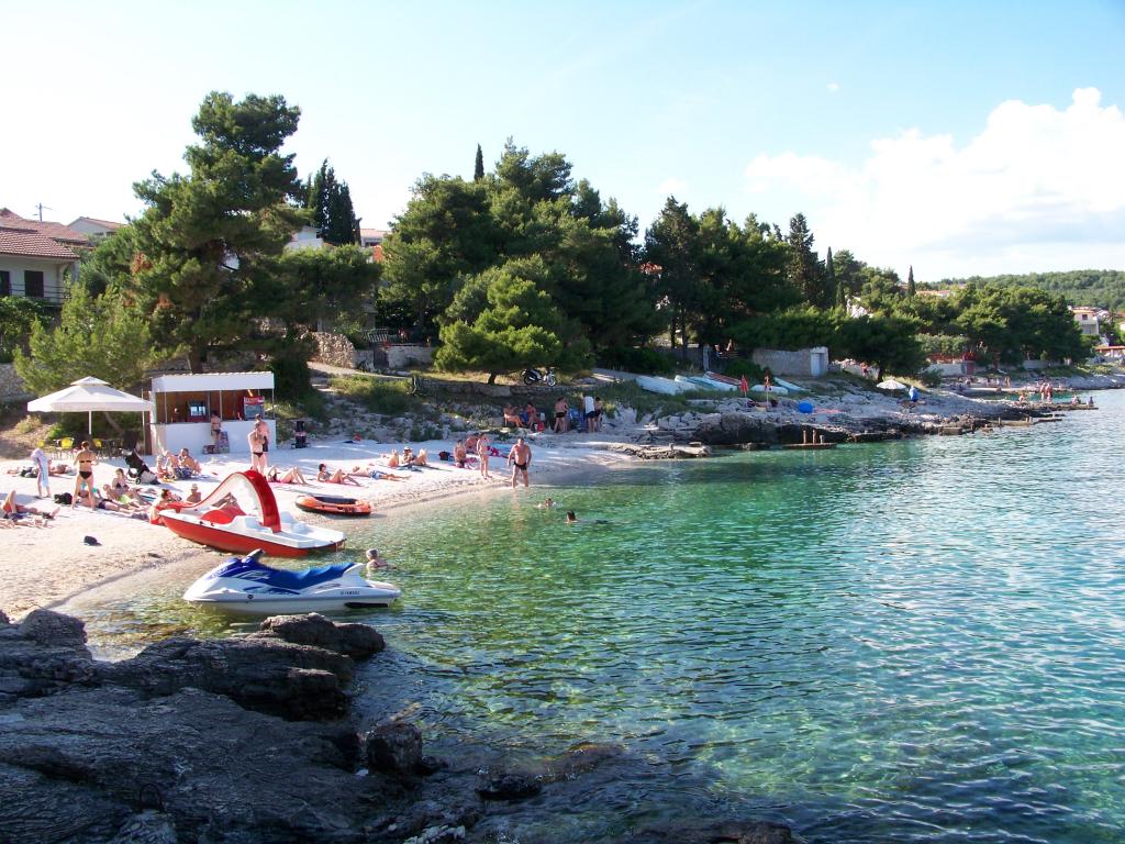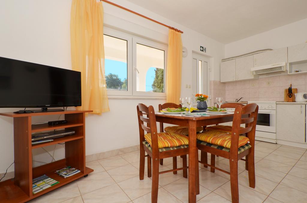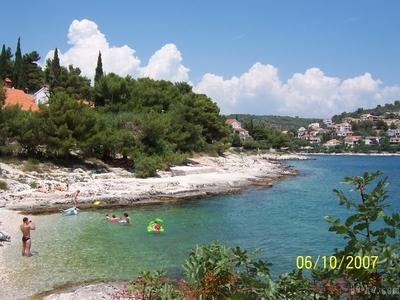 Ciovo, Südseite, Bucht Mavarštica, wir vermieten neue Apartments für 3–4 Personen, SAT-LED-Samsung-Fernseher 32 (82 cm), DVD, Mikrowelle, Mixer, Klimaanlage, schnelles optisches WLAN-Internet. Alle Wohnungen verfügen über eigene Parkplätze im Schatten, einen Grill und sind nur 50 m vom Strand (Bild) entfernt, der für kleine Kinder geeignet ist. Die Apartments liegen 4 km von Trogir entfernt, einer Stadt voller Denkmäler, die unter dem Schutz der UNESCO stehen. Alle Wohnungen verfügen über eine große Terrasse mit Meerblick und einen weiteren Balkon im Schlafzimmer. Die Entfernung zum nächsten Restaurant beträgt 70 m. Die Entfernung zum Aquapark beträgt 100 m. Die Entfernung zum nächsten Geschäft beträgt nur 400 m. Die nächste Apotheke, Geldautomat, großer Supermarkt, Markt und Geldautomat sind 900 m entfernt. Zur kostenlosen Verfügung stehen Ihnen: eine Gartenschaukel, eine große Kinderschaukel aus Holz, eine zusätzliche Gartendusche, eine Sitzbank beim Grill und ein Sonnenschirm für die Terrasse. Den Gästen steht im Hof eine Tischtennisplatte der Marke Sponeta mit Schlägerset sowie elektronische Darts zur Verfügung. Polnisch, Deutsch, Englisch, Französisch, Spanisch, Italienisch ... Auf dem Smart-TV können frei empfangbare SAT-Programme angesehen werden. Außerdem ist die Anwendung GoNet TV (Lepša TV) installiert, mit der die Gäste slowenische, tschechische, slowakische, ungarische und ukrainische Programme ansehen können.