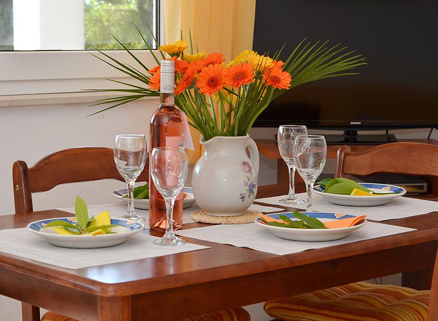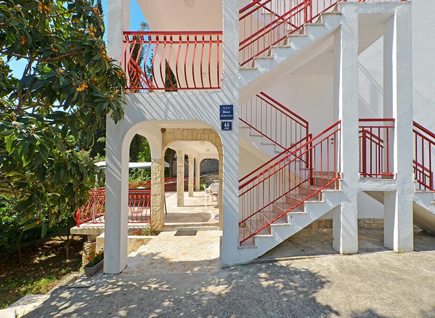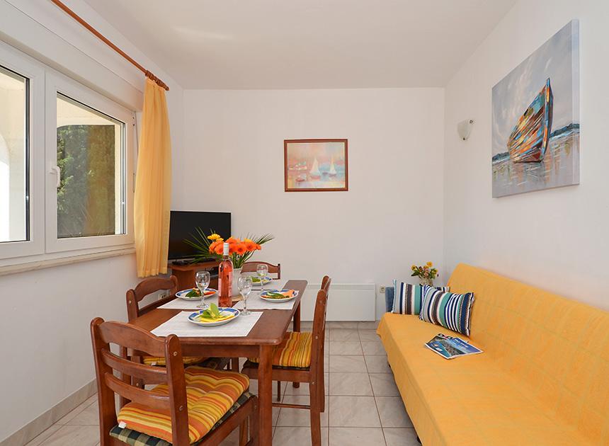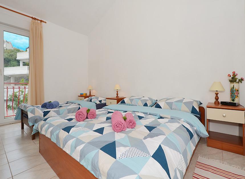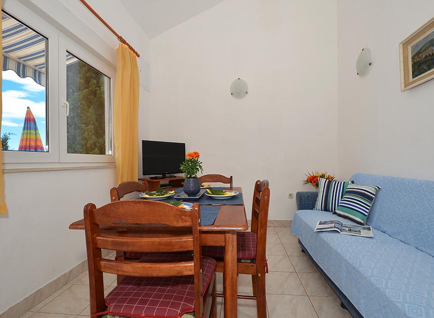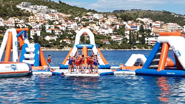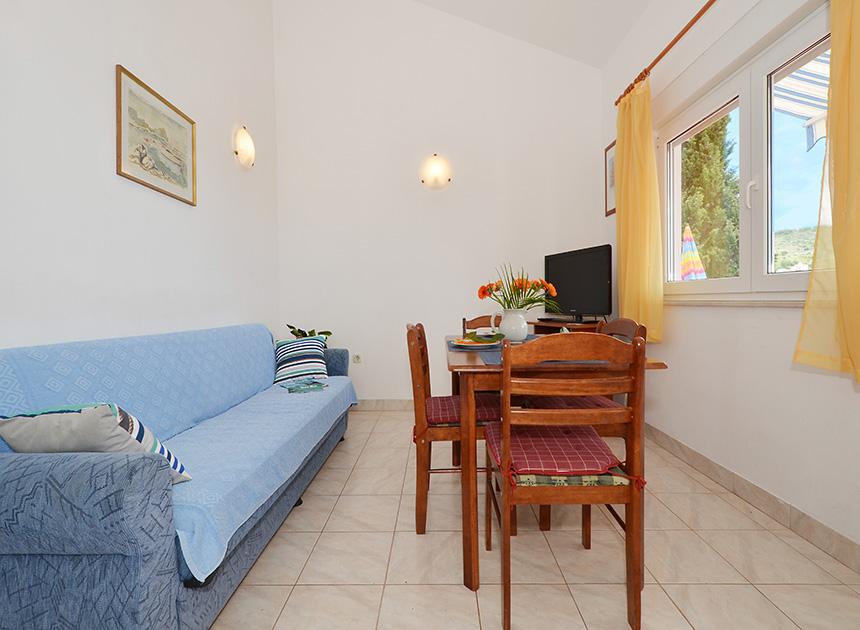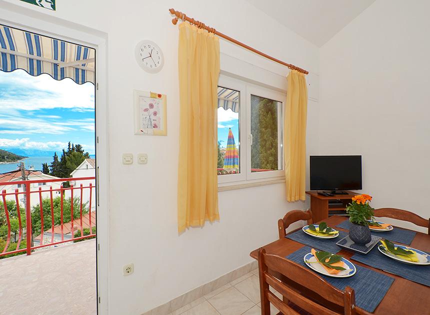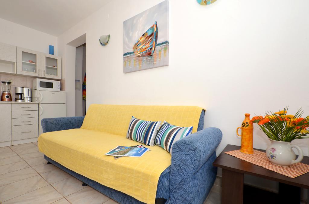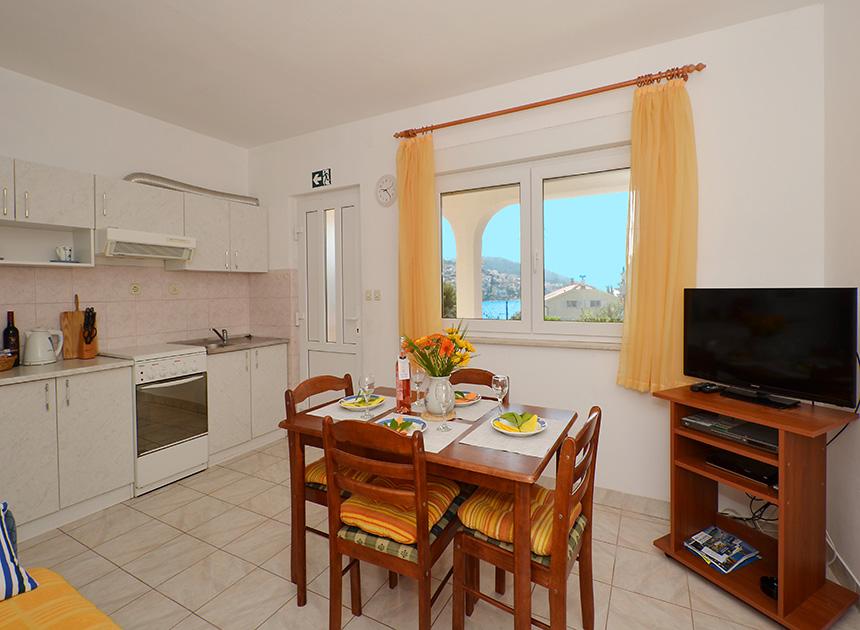 Ciovo, Südseite, Bucht Mavarštica, wir vermieten neue Apartments für 3–4 Personen, SAT-LED-Samsung-Fernseher 32 (82 cm), DVD, Mikrowelle, Mixer, Klimaanlage, schnelles optisches WLAN-Internet. Alle Wohnungen verfügen über eigene Parkplätze im Schatten, einen Grill und sind nur 50 m vom Strand (Bild) entfernt, der für kleine Kinder geeignet ist. Die Apartments liegen 4 km von Trogir entfernt, einer Stadt voller Denkmäler, die unter dem Schutz der UNESCO stehen. Alle Wohnungen verfügen über eine große Terrasse mit Meerblick und einen weiteren Balkon im Schlafzimmer. Die Entfernung zum nächsten Restaurant beträgt 70 m. Die Entfernung zum Aquapark beträgt 100 m. Die Entfernung zum nächsten Geschäft beträgt nur 400 m. Die nächste Apotheke, Geldautomat, großer Supermarkt, Markt und Geldautomat sind 900 m entfernt. Zur kostenlosen Verfügung stehen Ihnen: eine Gartenschaukel, eine große Kinderschaukel aus Holz, eine zusätzliche Gartendusche, eine Sitzbank beim Grill und ein Sonnenschirm für die Terrasse. Den Gästen steht im Hof eine Tischtennisplatte der Marke Sponeta mit Schlägerset sowie elektronische Darts zur Verfügung. Polnisch, Deutsch, Englisch, Französisch, Spanisch, Italienisch ... Auf dem Smart-TV können frei empfangbare SAT-Programme angesehen werden. Außerdem ist die Anwendung GoNet TV (Lepša TV) installiert, mit der die Gäste slowenische, tschechische, slowakische, ungarische und ukrainische Programme ansehen können.