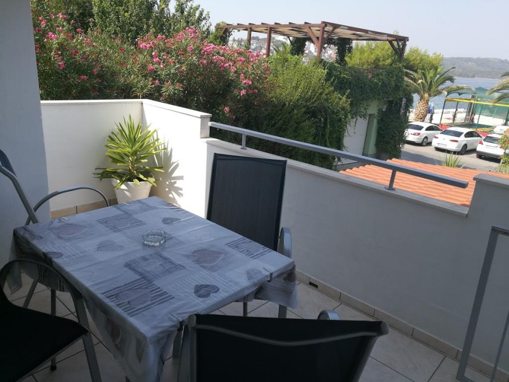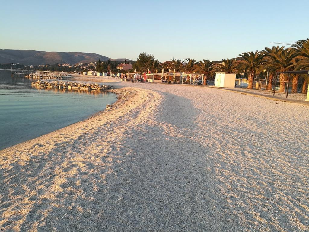 Apartment mit Meerblick in der Familienpension, die 5 Meter vom schönen Sandstrand, der viele Möglichkeiten für Sport und Erholung bietet sich befindet. Am Strand gibt es zahlreiche Restaurants und Cocktailbars, und dort können Sie auch Boote mieten, Jet-Ski, Roller .... Von UNESCO Trogir liegt 2 km entfernt und kann mit dem Boot, die alle 15 Minuten fährt zu gehen. Aufgrund der Nähe von allen, können Sie Ihr Auto stehen lassen. Die Apartments sind mit Sat-TV und Internet ausgestattet. Im Vordergrund befindet sich ein großer Garten und kostenlose Parkplätze, und für alle anderen Gastgeber sind immer für Sie da.