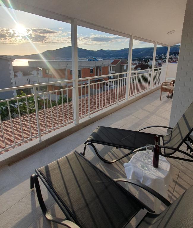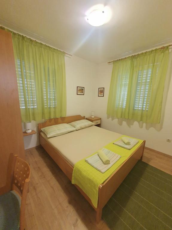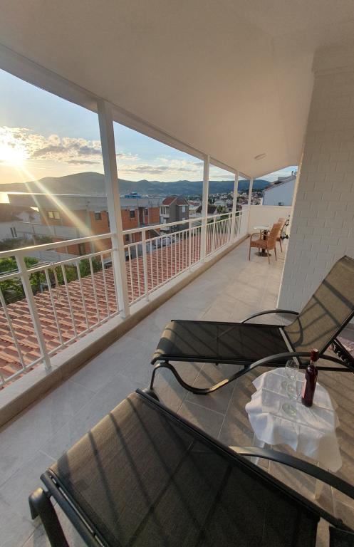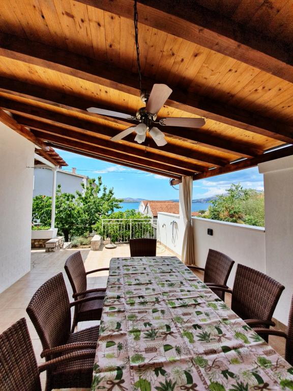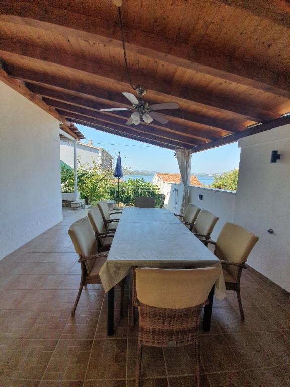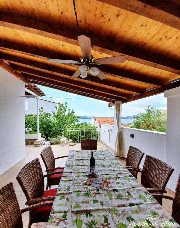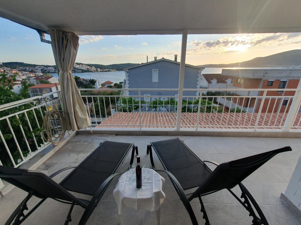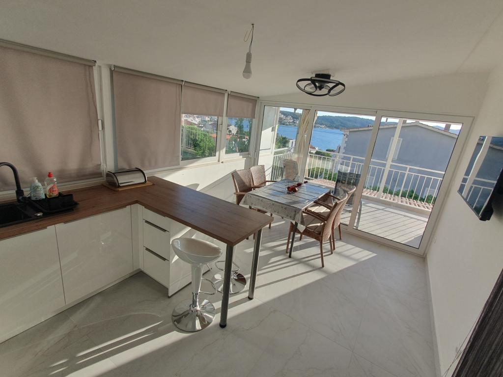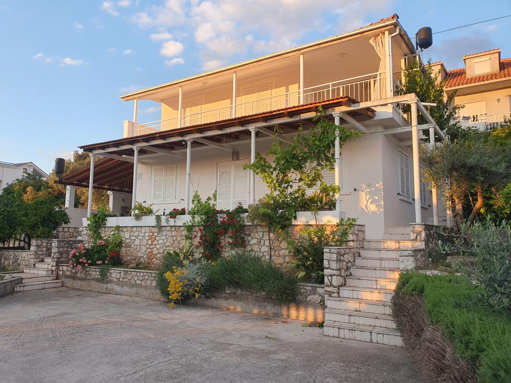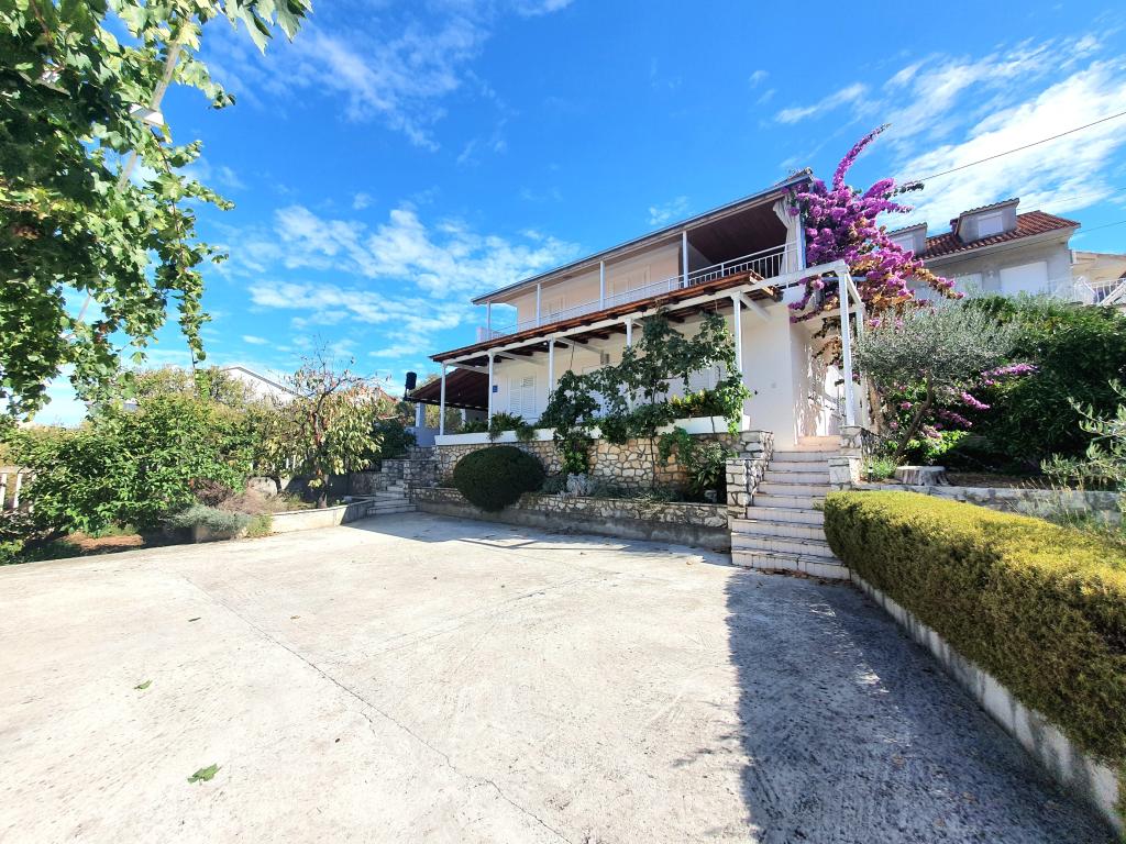 Voll ausgestattete Apartments in einem Haus in Okrug Gornji. Der Strand ist 200 m (ca. 3 Gehminuten) und das Zentrum 400 m entfernt. Strandeinrichtungen: Café-Bar, Restaurants, Geschäfte, Geldautomaten, Jetski-Verleih, Boots- und Rollerverleih, Bus- und Bootstransfer nach Trogir, Touristeninformation usw. Apartment 1 (A6+2): Ihnen steht das gesamte Erdgeschoss des Hauses zur Verfügung. Es umfasst drei Schlafzimmer (Doppelbetten), ein klimatisiertes Wohnzimmer (mit einem zusätzlichen Schlafsofa), eine Küche, ein Badezimmer und ein zusätzliches WC. Im geräumigen Innenhof mit erhöhter Terrasse können Sie grillen, eine Außendusche genießen oder einfach nur den Meerblick genießen. Apartment 2 (A4): Neu adaptiertes Apartment im ersten Stock des Hauses mit geräumiger Terrasse und herrlichem Meerblick. Es verfügt über zwei Schlafzimmer (Doppelbetten), ein klimatisiertes Wohnzimmer, eine voll ausgestattete offene Küche und ein Badezimmer. Im Innenhof stehen vier Parkplätze zur Verfügung.