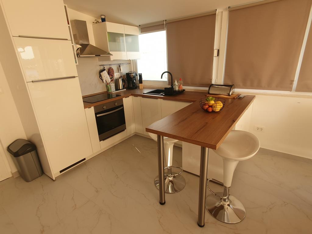 Eine große Wohnung, 3 separate Zimmer, ein ausklappbares Sofa im Wohnzimmer, ein Badezimmer und ein zusätzliches WC. Die Küche ist komplett ausgestattet – großer Kühlschrank, Geschirrspüler, Induktionskochfeld und Backofen. Viele Teller, Tassen, Gläser, Besteck und weiteres weiteres Küchenzubehör. Die Wohnung wurde gründlich gereinigt, frei von Pilzen und Schimmel. Schöne Terrasse mit Dusche, großem Tisch, Grill. Die zweite Terrasse mit einer gemütlichen Ecke und einem „Dach“ aus Pflanzen In der Nähe des Strandes und der Geschäfte. Die Wohnung hat alle meine (hohen) Ansprüche erfüllt, ich kann sie wirklich empfehlen!