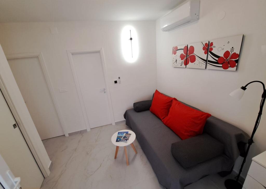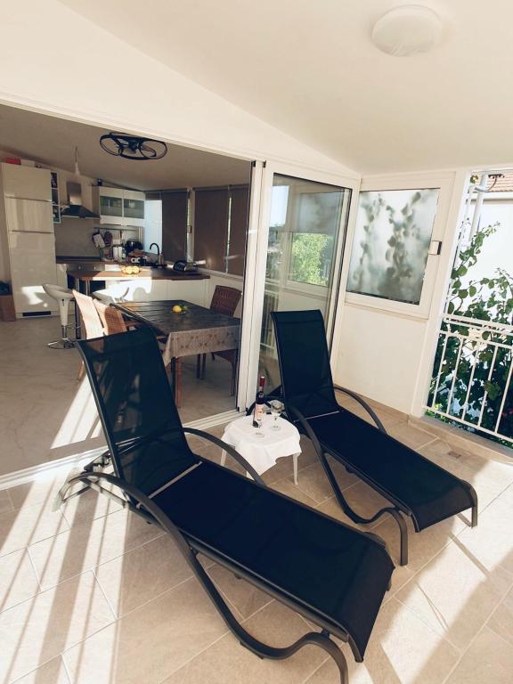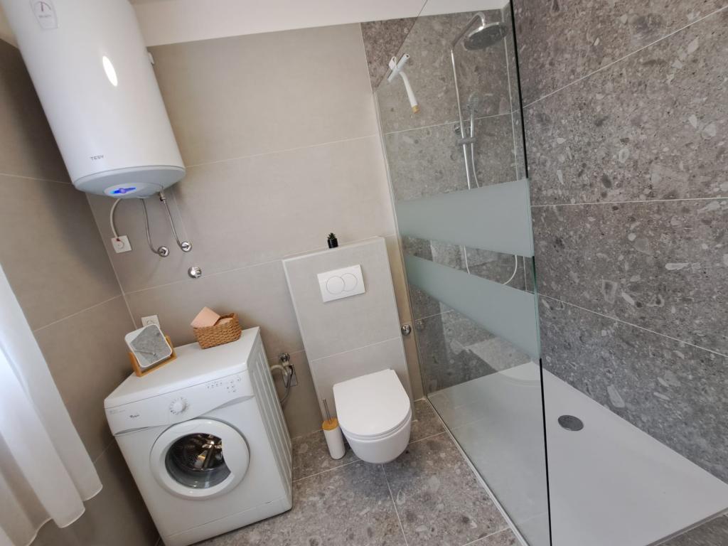 Apartment mit riesiger Terrasse, Meerblick und Außendusche. Voll ausgestattet und komfortabel. Ruhige Nachbarschaft und sehr nah am Strand. Die Besitzer waren sehr hilfsbereit, nett und höflich. Wir wurden mit kroatischem Wein und wunderbarem hausgemachtem Olivenöl begrüßt. Vielen Dank für Ihre wundervolle Gastfreundschaft.