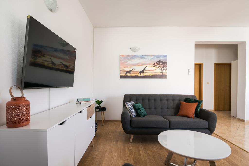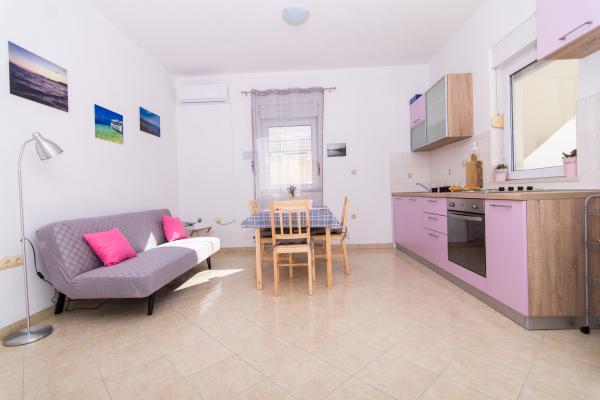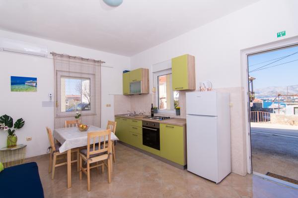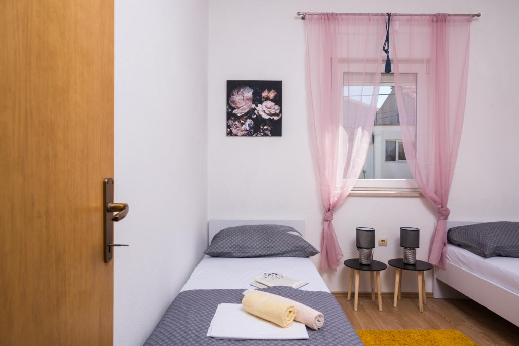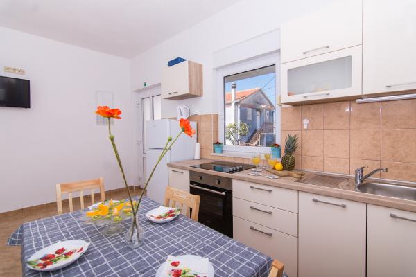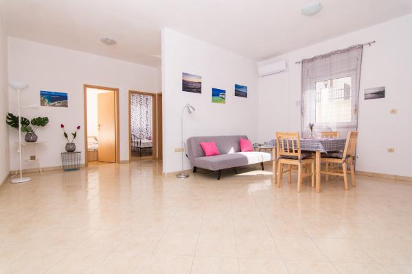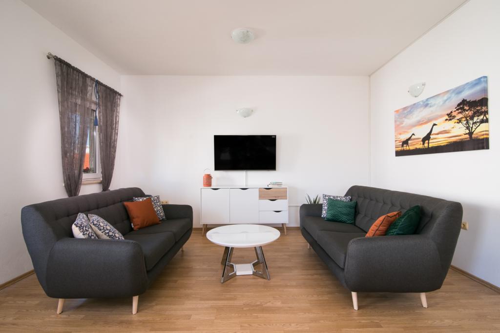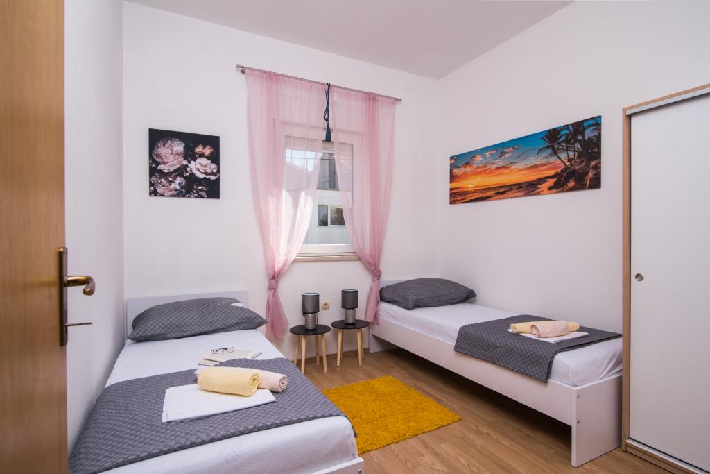 Vollständig und modern ausgestattete Apartments in einem ruhigen Teil von Okrug Gornji, 150 m vom Stadtzentrum entfernt. Die Apartments bieten alles, was Sie brauchen und Ihren Aufenthalt so angenehm wie möglich gestalten. Das Stadtzentrum – 5 Gehminuten entfernt (in der Nähe von Post, Markt, Geschäften, Cafés, Restaurants und Apotheke) und die Nähe zu allen Stränden machen unsere Anlage noch interessanter und attraktiver. Die ruhige Umgebung ermöglicht Ihnen einen angenehmen Aufenthalt und ermöglicht es Ihnen, Ihren Morgenkaffee in Ruhe auf der Terrasse vor dem Apartment zu genießen.