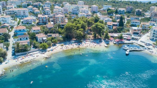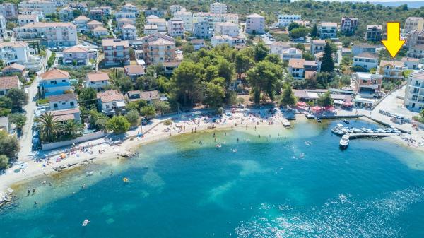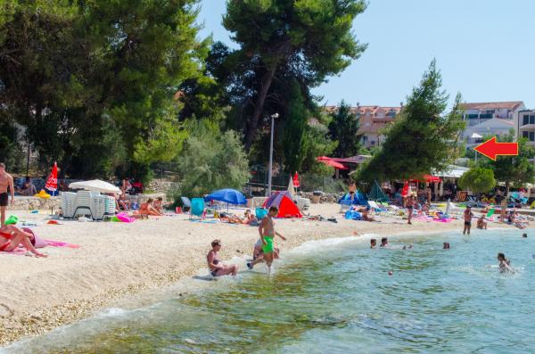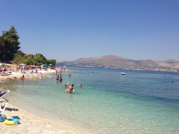 Nette Besitzer. Ruhigen Gegend der Stadt. 15 Minuten, um die Innenstadt. 10 Minuten mit dem PKW nach Trogir. 40m zum Strand, mit einem sehr kleinen Steinen. Saubere und schöne Zimmer. Gospadarz tun guten Wein. Wir empfehlen Wohnung Milka, wir hatten einen schönen Urlaub.