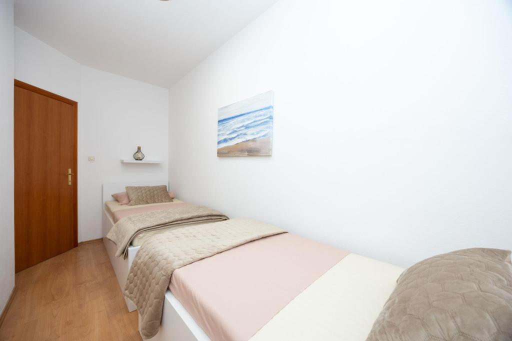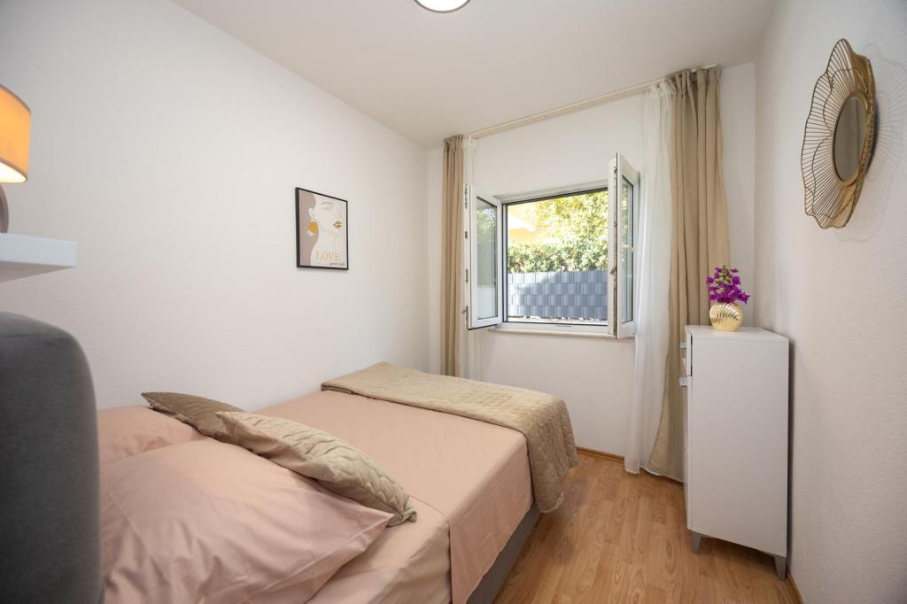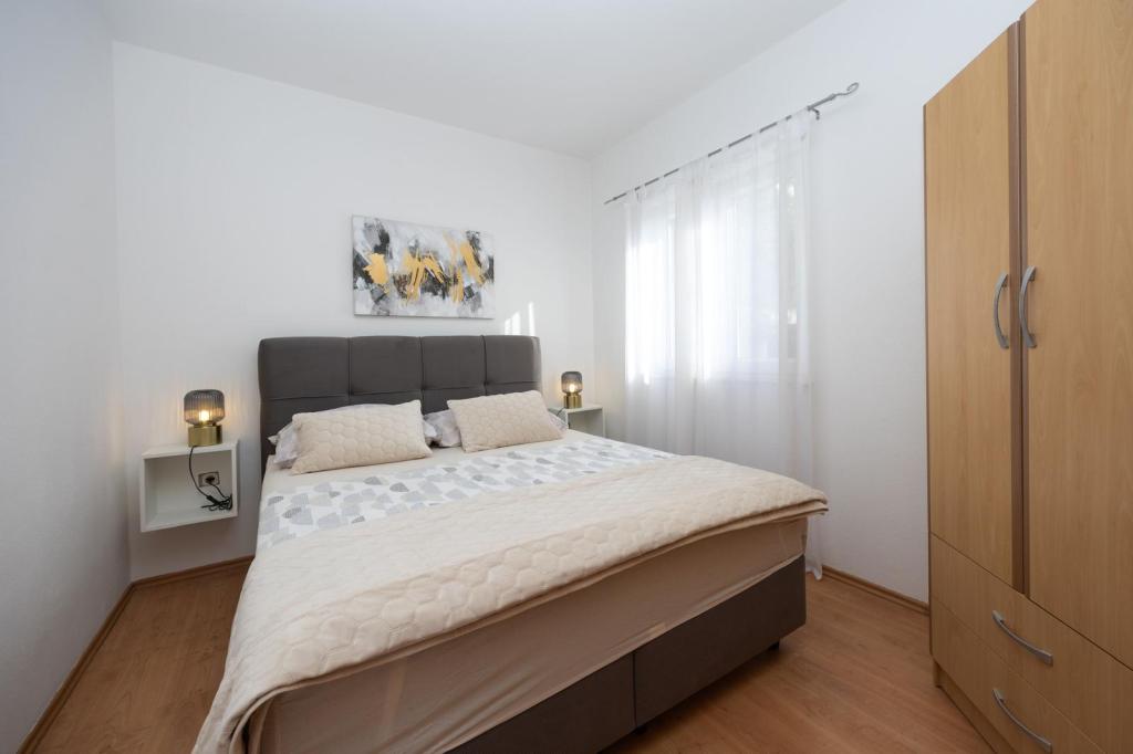Apartments Nela mit einer komfortablen Unterkunft ausgestattet, auf der Südseite der Halbinsel Ciovo gelegen. Genauer gesagt, in der Bucht Movarštica. Der Blick erstreckt sich auf den Inseln von Solta und Drvenik. In der Nähe liegt die wunderschöne historische Stadt Trogir, die mit ihrer Architektur und Unterhaltung erfreut. Nähe befindet sich der Flughafen von Split (6 km), die Stadt von Kastela (6km), Split (33 km). . Verbringen Sie Ihren Urlaub in einem ruhigen Ort, entspannen und genießen die idyllische Meer, Bokun gutes Essen und ein Glas Wein und Wasser. Apartments Nela sind die ideale Wahl für Sie. Familie Rajcic Sie nestrepljivo erwartet!
