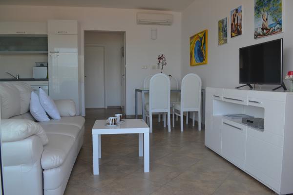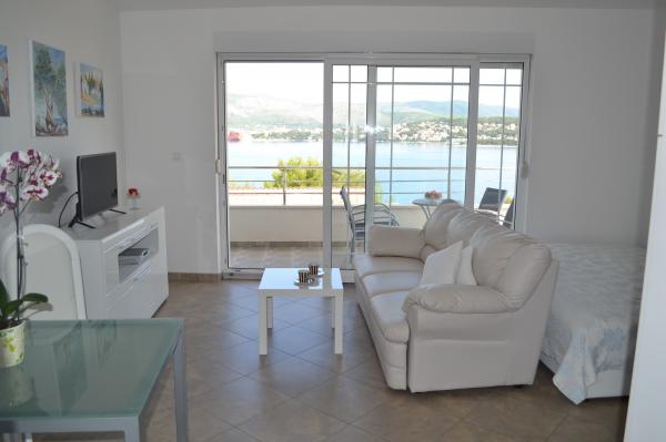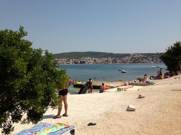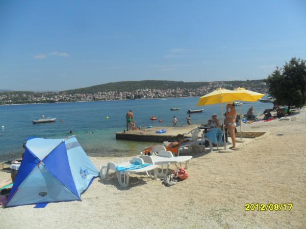 Willkommen bei Apartments Oklopčić! Apartments befinden sich in Okrug Gornji auf der Insel Čiovo, die mit dem Festland und der Stadt Trogir (auf der Liste der UNESCO) mit Brücke verbunden ist. Stadt Trogir ist 4 km, Flughafen Split 10 km und die Stadt Split 25 km von den Apartments Oklopčić. Wir vermieten drei Wohnungen; Wohnung A (2 2), Wohnung B (2 2) und Wohnung C(2 1). Die Appartements haben drei Sterne, 48m2, komplett möbliert und jede Wohnung hat eine Terrasse mit Blick auf das Meer. Im Garten befindet sich eine Terrasse mit Grill, Tischen und Stühlen, die unseren Gästen zur Verfügung stehen. Der Preis beinhaltet die Kurtaxe, Klimaanlage, Parkplatz, Bettwäsche, Handtücher, Nutzung der Waschmaschine, Geschirrspüler und WI-FI. Wenn Sie Ihren Urlaub in einem ruhigen Ort, schöne Natur zu verbringen, genießen Sie das klare Meer, wunderschöne Strände und Spaziergänge am Meer (Strand ist etwa 2 km lang), sollten Sie entscheiden, Ihren Urlaub bei uns zu verbringen.