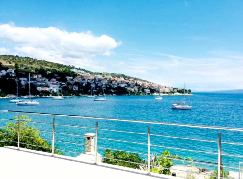 Apartments auf der Insel Ciovo, in erster Reihe zum Meer, voll und modern ausgestattet, in einer ruhigen Siedlung mit Blick auf die Insel Brac und Solt, ein idealer Ort für Ruhe und Entspannung. Jede Wohnung verfügt über 2 Schlafzimmer, Wohnzimmer, Küche, Bad, Diele und eine große Terrasse. Parken ist im Hof zur Verfügung gestellt. Perfektes Mikroklima. Okrug Gornji ist 500 m entfernt. Trogir 5 km vom Haus entfernt. Vom Hauptstrand in Okrug aus gibt es eine regelmäßige Schiffsverbindung nach Trogir. Der Strand in Okrug ist Kieselstein und bietet Einrichtungen wie Restaurants, Bootsverleih, Roller, Tauchschulen, Bootsfahrten zu den Inseln. In der Nähe sind Tennisplätze. Split ist ca. 30 km entfernt, Flughafen ca. 8 km und Sibenik 45 km, Krka National Park 50 km.