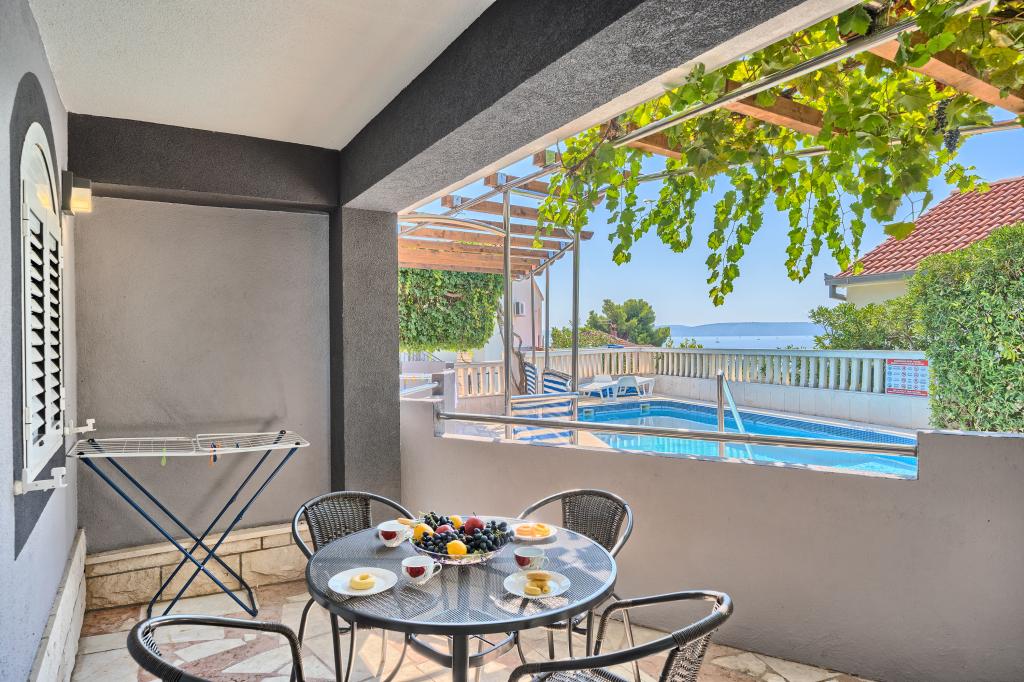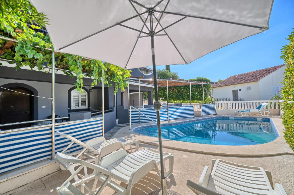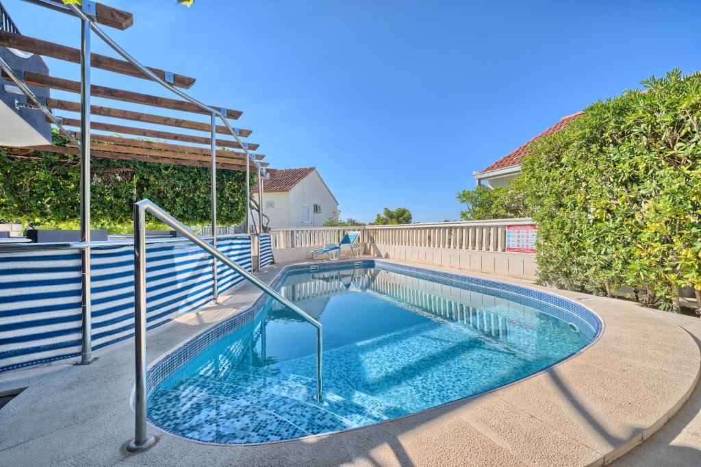 Tičić Apartments befinden sich in der Bucht Mavarstica, die auf der Südseite der Insel Ciovo ist, nur 1,5 km von Okrug Gornji und 5 km von der Stadt Trogir. Neue Gebäude, fünf Suiten und App 1 (4), App 2 (5 +1), App-3 (4 +1), App 4 (3 +1) und Apartment bietet 5 stellt sicher, dass jeder wird sicherlich finden Sie selbst heraus, Unterkunft zugeschnitten. Alle Wohnungen verfügen über einen schönen Blick auf das Meer, und vor dem Haus gibt es einen Pool, die derzeit Erfrischung und Entspannung bieten wird. Für Ihr Auto von der Rückseite des Hauses befindet sich ein großer Parkplatz, wo Sie in der Lage, ihre Haustiere Zinn frei zu lassen und genießen einen unbeschwerten Urlaub.