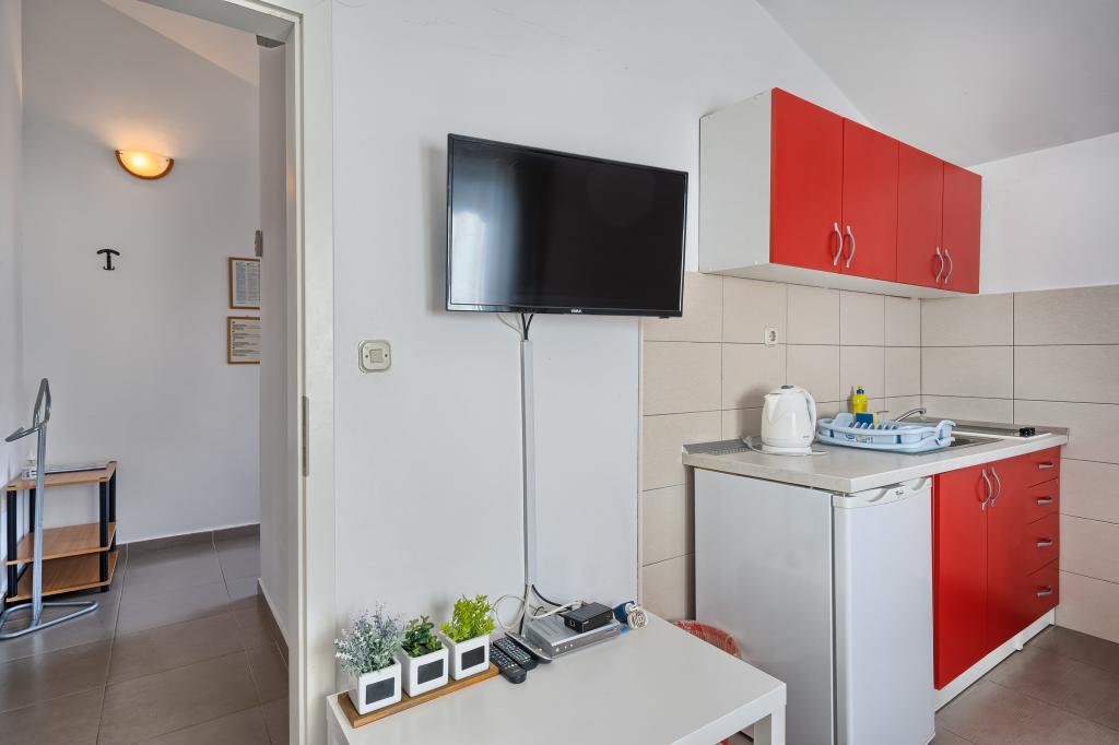 Kurtaxe ist im Preis inbegriffen.Insel Ciovo bieten auch einen ruhigen und einsamen Buchten, aber auch Orte der Unterhaltung, Erholung und Sport. Die Westseite der Insel ist wegen der schönen Strände und einsame Buchten, sowie außergewöhnliche Möglichkeiten zum Angeln Besonderes. Auf der Ostseite ist mit kleinen Stränden und Orten für erholsamen und ruhigen Urlaub punktiert. Für die Abenteuerlustigen, ist es empfehlenswert, einen kleinen Motor Boot mieten und eine Tour durch die Insel Ciovo Gewässern und umliegenden Inseln auf die Südseite Ciovo vielen versteckten und einsamen Buchten ideal für einen ruhigen Urlaub gegeben. Für diejenigen, die für sportliche Aktivitäten in Okrug Gornji gibt Tennisplätze, wo man eine "weiße" Sport genießen können. Die Bucht Mavarštica ist eine Tauchschule, mit deren Hilfe Sie beim Tauchen in der Lage, die